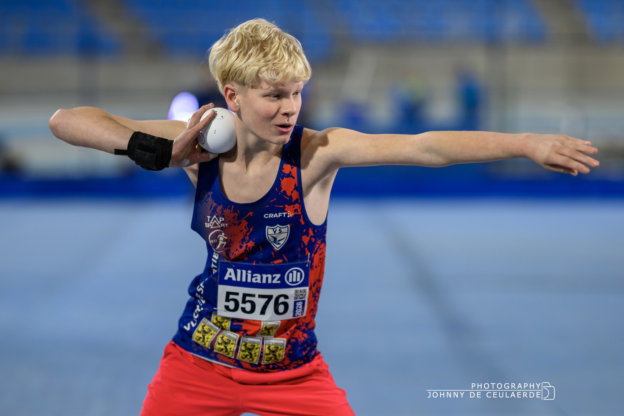 Op zondag 25 januari vond het Kampioenschap van Vlaanderen AC plaats in de Gentse Topsporthal. We werden vertegenwoordigd door Andreas De Lathauwer, Leander Casteels en Robbe Van Hoorde. Voor Andreas is de combinatie van fulltime werken en trainen niet evident. Het was dan ook spannend om te zien hoe hij zijn eerste echte test van het seizoen zou doorstaan, tegen toppers als Kwinten Cools (DCLA) en Alexander Anthonissen (KAPE). Eerstejaarsbelofte Robbe zag deze wedstrijd als een volgende stap richting de 17 meter. Hij weet dat hij dit al in zich heeft, maar is de jongste weken nog wat zoekende naar het juiste ritme en een degelijke afworp. Voor Leander blijft kogelstoten een leuke bijzaak, zijn volledige focus ligt op het discuswerpen. En wat met dat andere boegbeeld, Cédric Broeckaert, hoor ik u vragen? Spijtig genoeg blijft hij veel last ondervinden van een aanslepende enkelblessure, waardoor pijnvrij werpen nog niet lukt en het ook geen zin heeft om in wedstrijdverband risico’s te nemen.