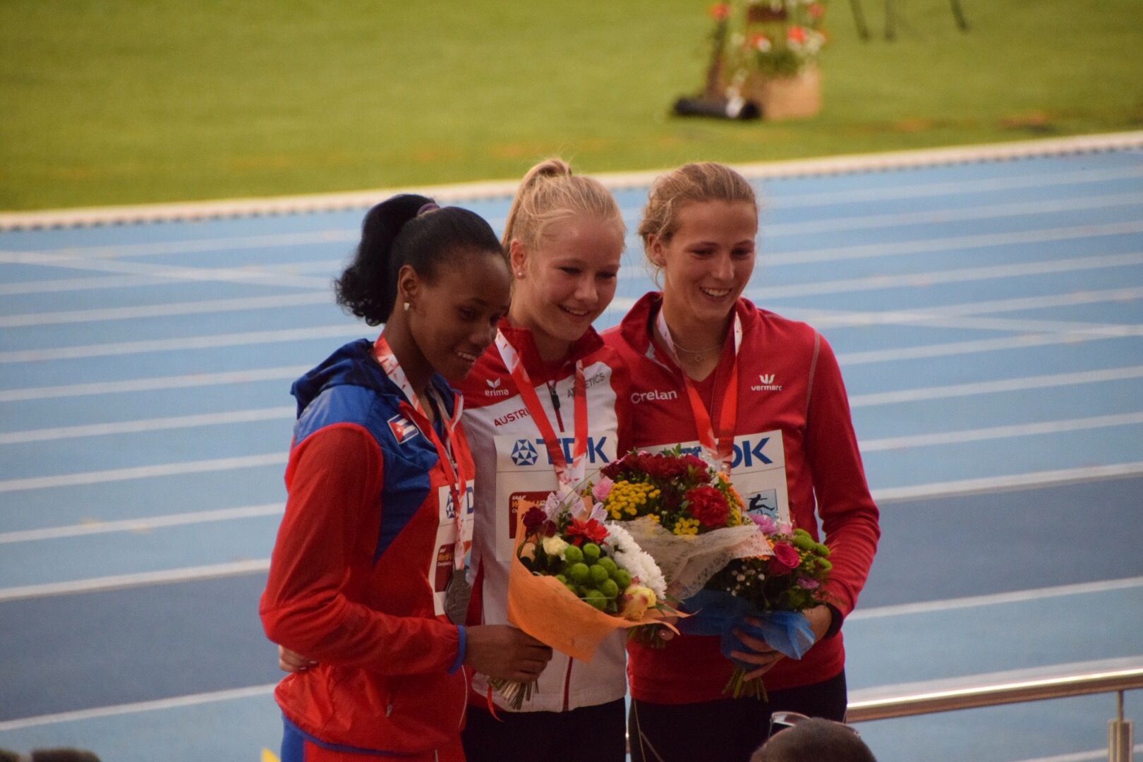 Om 19u was het eindelijk zo ver. Na een, naar ons gevoel, wel heel lange namiddag mocht Hanne starten in de 3de en beste reeks van de 800m. Van bij de start nam ze de leiding en liep haar eigen tempo. Dit resulteerde in een knappe overwinning in 2’15″70. Hierdoor kwam haar 3de plaats nooit in gevaar. Proficiat Hanne met je nieuw PR van 5881 punten en de schitterende bronzen medaille!