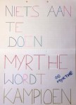 Tot slot nog een dikke proficiat aan onze hoofdrolspeelster in dit verhaal! Hoedje af voor de inzet de afgelopen maanden, de verwachte afstand is er misschien nu niet uitgekomen maar dat komt sowieso nog! Myrthe, laat de eerste ontgoocheling maar snel plaatsmaken voor fierheid. Is echt terecht en ik ben het alvast.