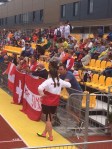 Woensdag 26 juli, het was zo ver. De laatste paar dagen waren niet al te vlekkeloos verlopen met o.a. een lichte verrekking in haar hamstring. Ook het weer zou wel eens een bepalende factor kunnen worden, want er werd immers onweer voorspeld op het uur van de kogelfinale. De voorspellingen zaten er knal op, alle wedstrijden werden een uur uitgesteld en iedereen moest naar binnen, ook de toeschouwers! Het positieve van de situatie was dat we hierdoor de knappe indoor accommodatie / opwarmingszaal konden bewonderen. Alles was er gloednieuw!