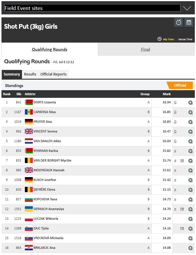 Ranglijsten kogel i