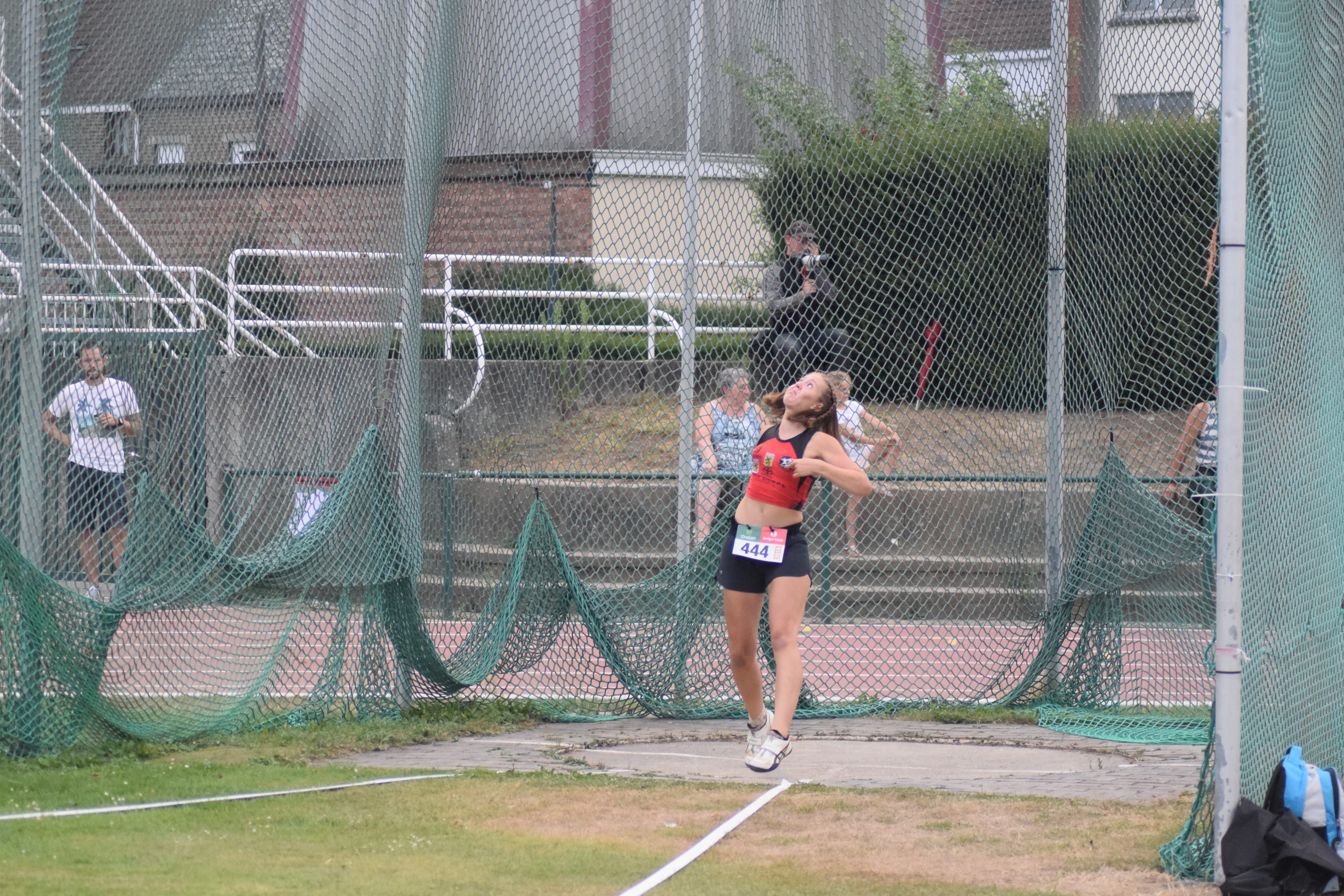 Over haar discusprestatie was Febe dan ook niet echt tevreden, ze kwam tot 29m78. Door het uitlopen van het discuswerpen moest ze zich haasten voor het kogelstoten. Die extra druk deed haar precies goed want ze stootte haar beste wedstrijd van het seizoen. Met worpen van 10m66 en 10m74, was ze reeds zeer regelmatig in de eerste 2 pogingen. In de 3de poging pakte ze zelfs voor het eerst uit met een 11m+ worp. Met 11m03 vestigde ze een knap nieuw PR en ook haar volgende poging mocht er zijn met 10m89. Proficiat Febe, knappe reeks en duidelijk klaar om volgende week tijdens de Nationale Interprovinciale match de Oost-Vlaamse eer te verdedigen in het kogelstoten. Ook Myrthe Van der Borght zal er in het kogelstoten bij de scholieren meisjes aantreden.