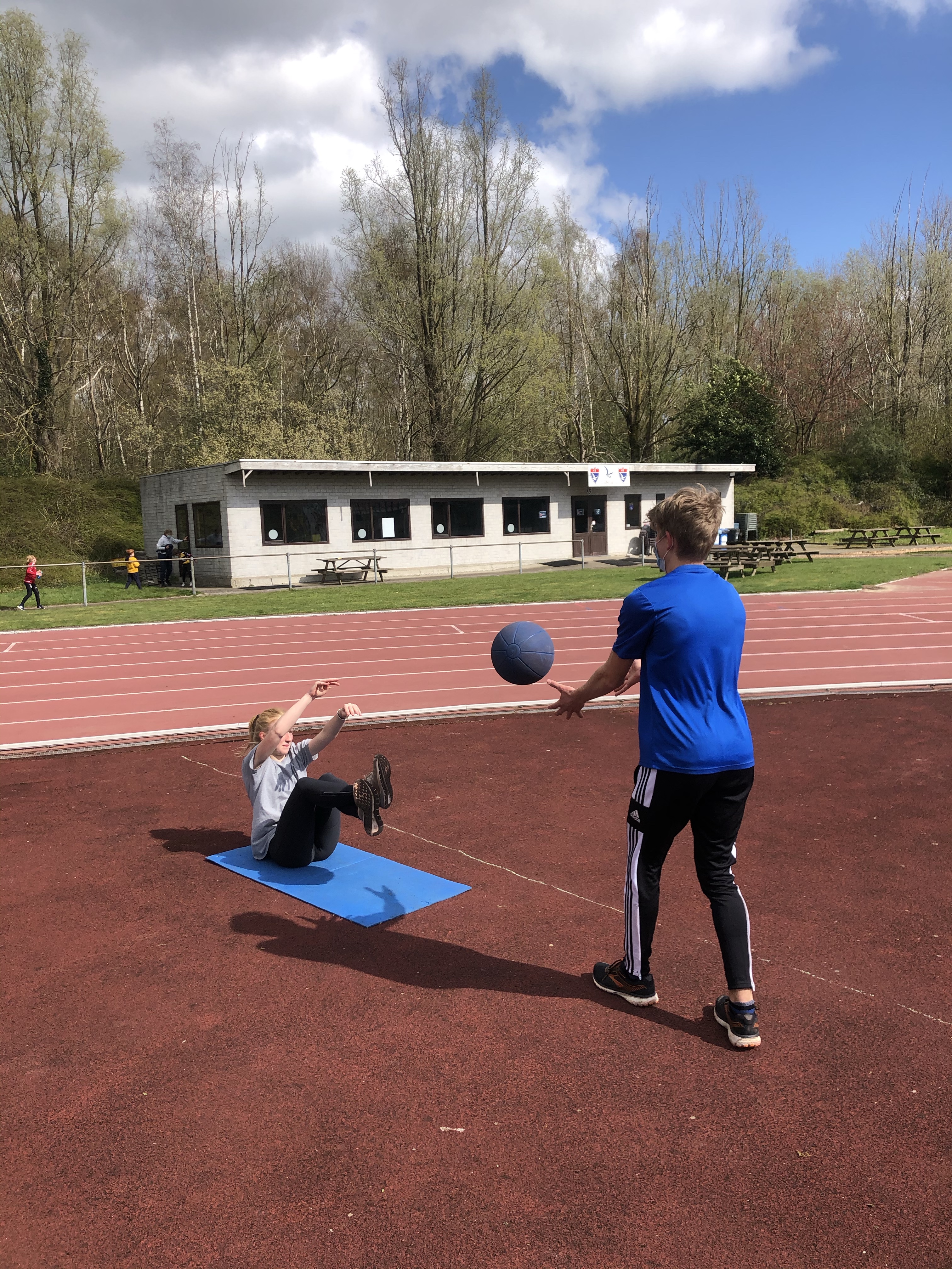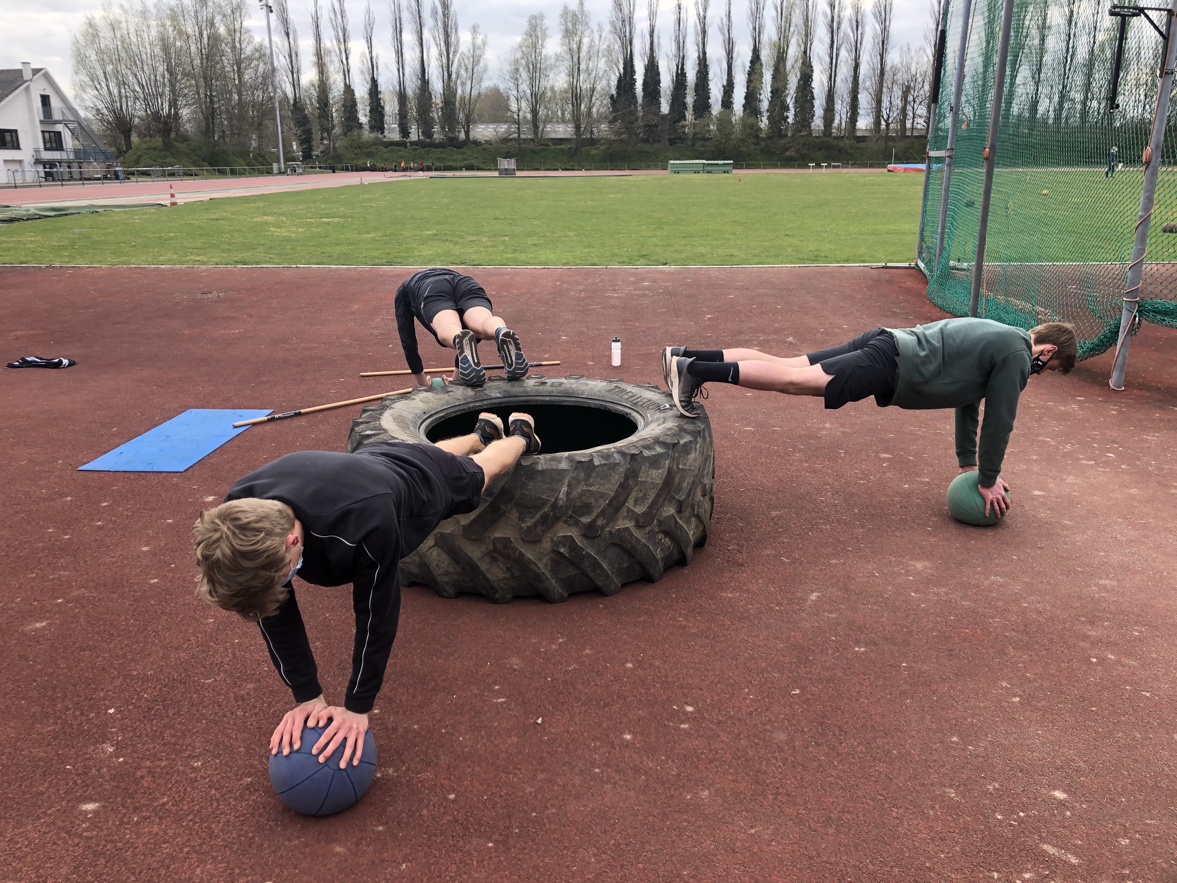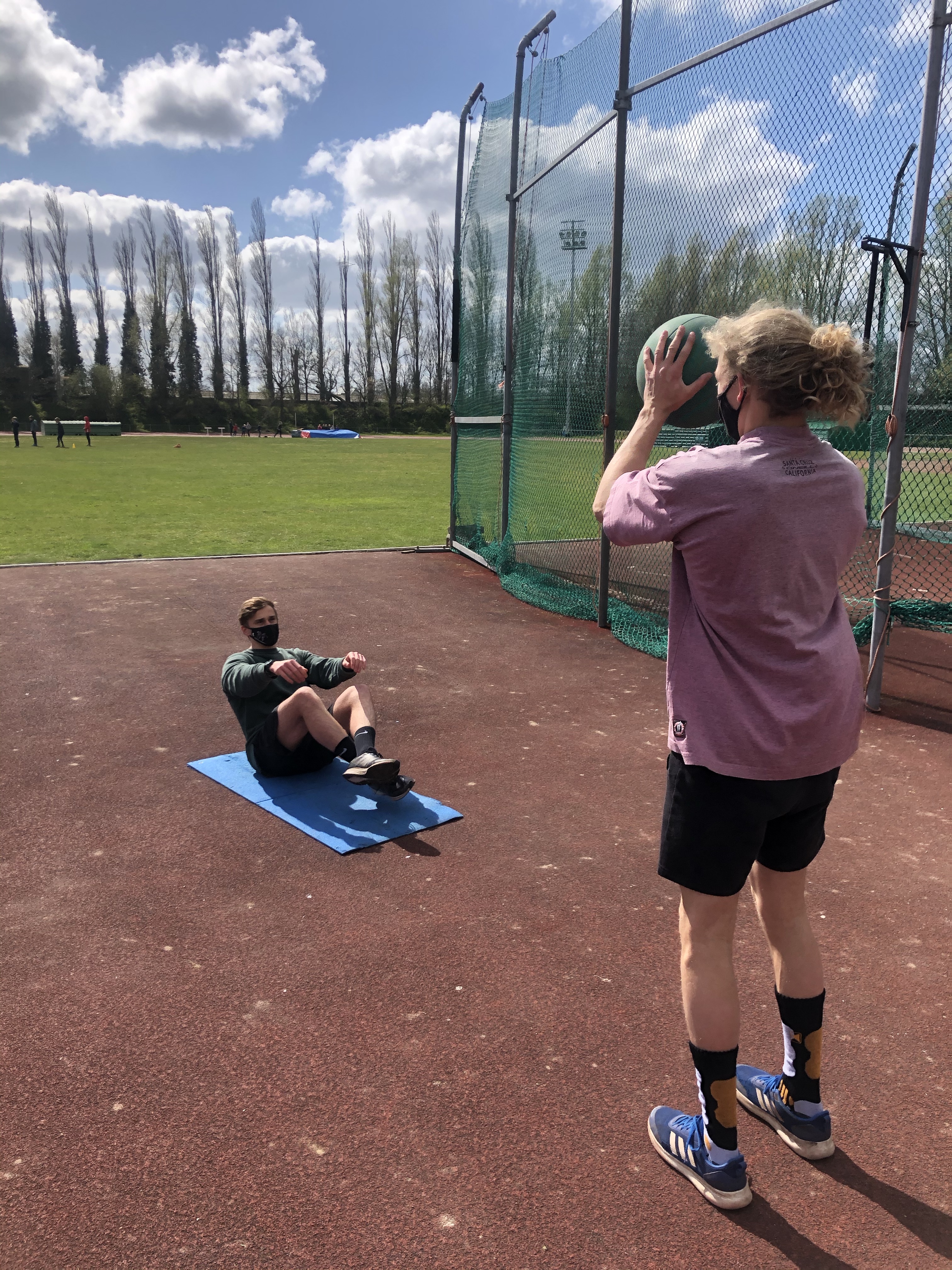 Dinsdag werd een rustdag. Gezien de weersomstandigheden, een verstandige beslissing. Gelukkig waren de weergoden ons woensdag wat beter gezind want het slechte weer bleef achterwege. De zon kwam af en toe piepen en zorgde zo voor een heel aangename dag, gevuld met rompstabilisatie, medicine bal oefeningen en terug kogel- en discus.