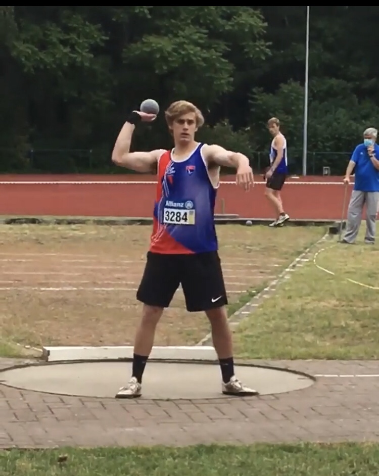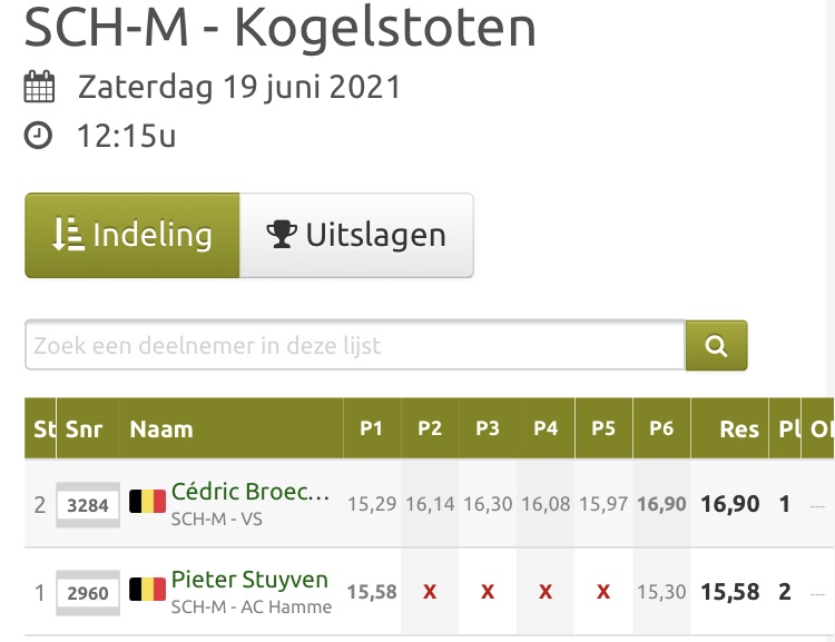 Hij begon met het kogelstoten waar hij, na een zeer regelmatige reeks worpen, in zijn laatste poging de puntjes op de i zette. Hij liet zijn 5kg zware kogel na 16m90 neerploffen, goed voor een nieuw persoonlijk record en een verbetering van het, slechts één jaar oude, clubrecord van Andreas De Lathauwer. Met deze knaller staat Cédric nu op de 12de plaats allertijden. Wie hem reeds bezig heeft gezien op training weet dat hij wellicht nog enkele plaatsjes zal opschuiven ;-)! Een filmpje van zijn recordworp kan u vinden op onze Instagrampagina.