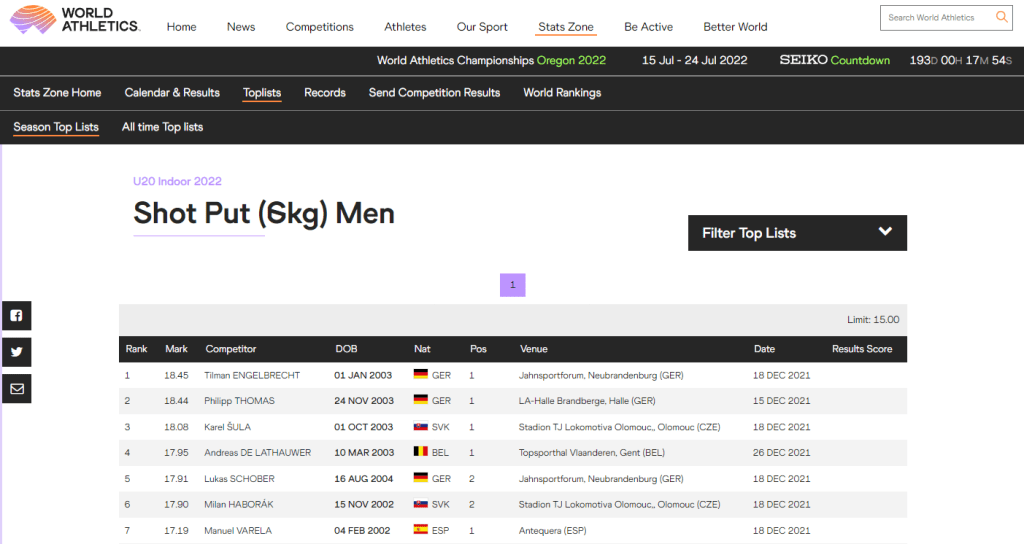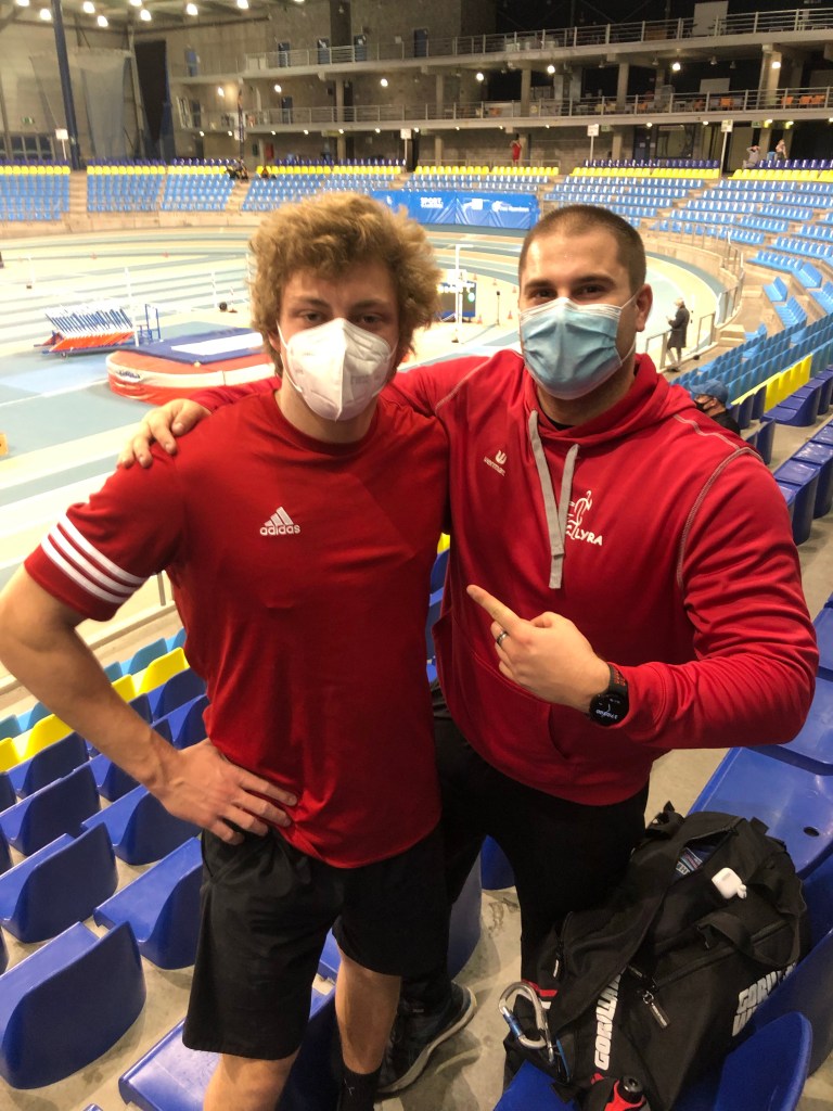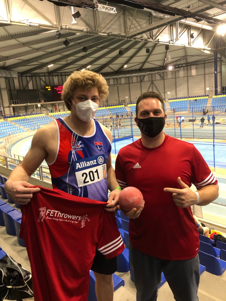 Zaterdag 2 januari 2022 zal voor VS en de FEThrowers de geschiedenis ingaan als de dag dat Andreas De Lathauwer het Belgisch record bij de juniors (6kg) verpulverde. Tijdens de STAX nieuwjaarsmeeting te Gent bracht hij het van 18m03 naar 18m45. Hij begon zijn wedstrijd onmiddellijk met een straffe 17m47 om dan in de 2de poging uit te pakken met een ongelooflijke 18m44. Na enkele verplichte handelingen door de hoofdscheidsrechter zoals het heropmeten van de worp met een stalen meter en het opnieuw wegen van zijn kogel, deed hij er in zijn 3de poging nog één centimetertje bij. Het oude record stond sinds 27 februari 2016 op naam van Matthias Quintelier, een topper die het ondertussen bij de seniors ook aan het waarmaken is. Matthias was één van de eerste om Andreas te feliciteren… en ze poseerden samen voor onderstaande memorabele foto!