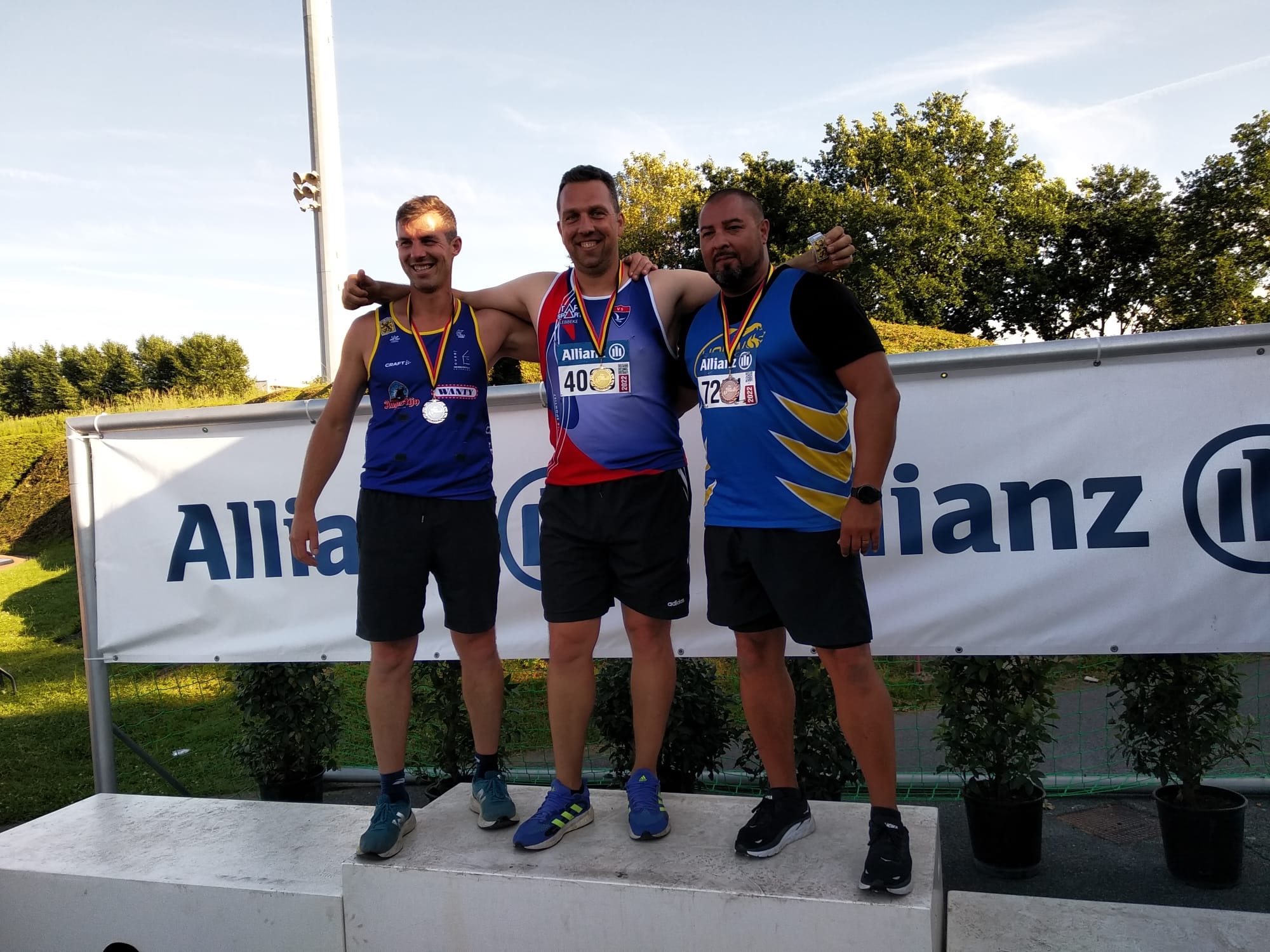 In dezelfde wedstrijden zagen we ook Sam in actie komen. Hij had zich vooraf duidelijke doelen gesteld, +10m50 met de kogel en +30m met de discus. In het kogelstoten kwam hij alvast heel dicht met 10m48. Hiermee werd hij 4de op het BK en 3de op het PK bij de M40-masters. Exact dezelfde plaatsen haalde hij met z’n discus. Maar daar was vooral de afstand die in het oog sprong. Na een heel mooie reeks kon hij huiswaarts met een dik PR van 34m04.