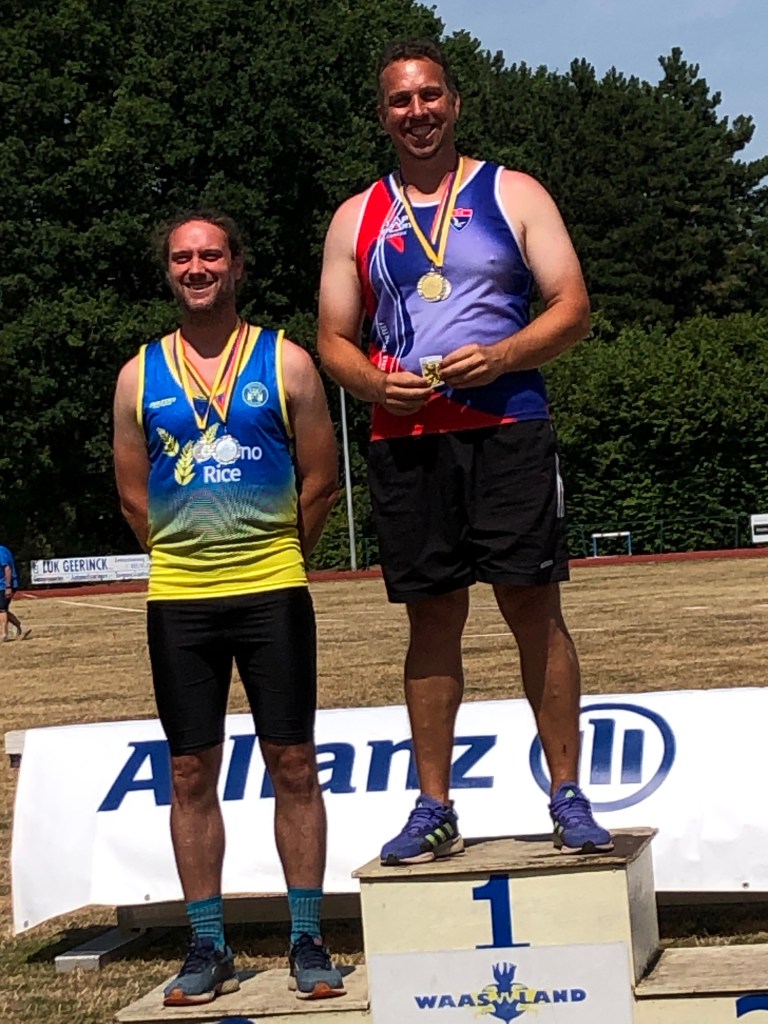 Vandaag, 17 juli, trok trainer Filip naar Sint-Niklaas om er deel te nemen aan het PK & BK werp5kamp voor masters. De masters M40 begonnen, samen met de juniors en seniors, reeds om 9u30 met het hamerslingeren. Dat werd dus vroeg opstaan. Gelukkig was hun wedstrijd kort na de middag reeds afgelopen en hoefden ze de loden hitte niet al te lang te trotseren.