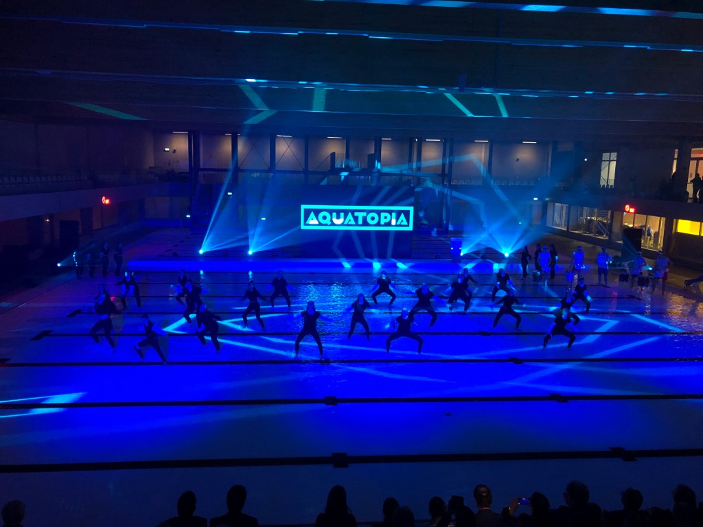 Het werd een mooi gevulde avond die aan elkaar gepraat werd door Sporza-presentator Maarten Vangramberen. Tijdens de feestelijke inhuldiging kregen de genodigden een exclusieve rondleiding achter de schermen. Tussendoor waren er ook spetterende optredens van Aalsters talent met o.a. zwemclub Neptunus Aalst, De Parel-dansers, kunstgroep Alkuone en indie-popzangeres Gisèle. Als toemaatje toonde zwembad mascotte Pol de Poema voor het eerst z’n nieuwe zwempak :-).