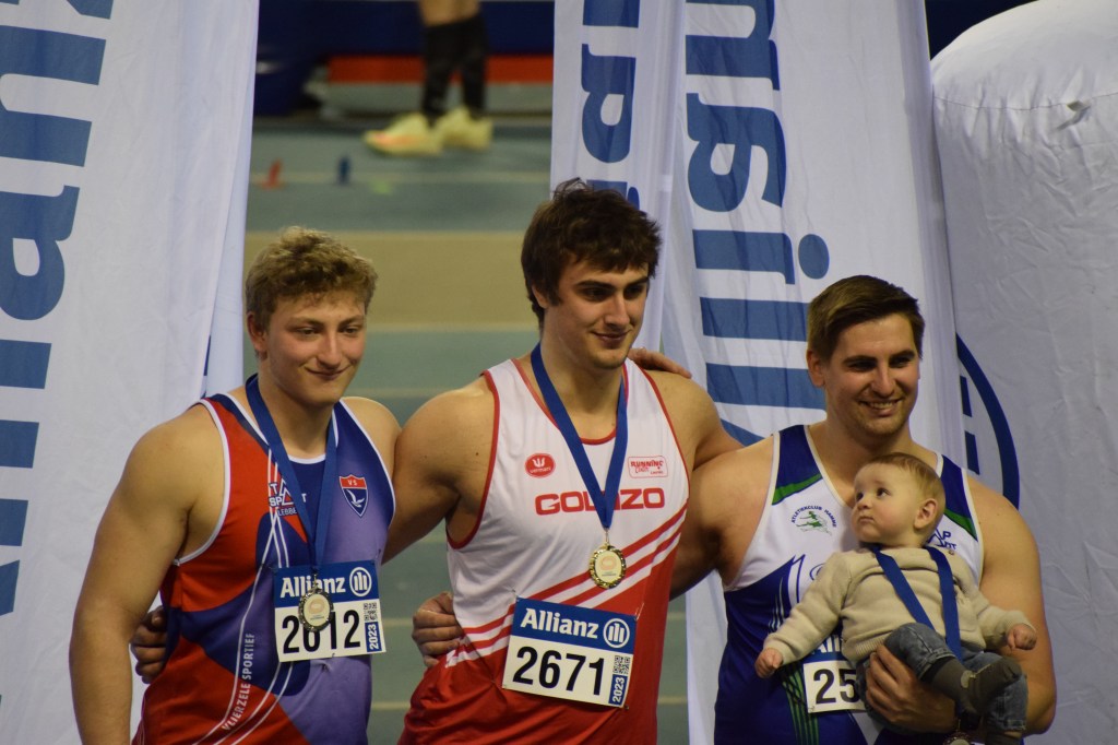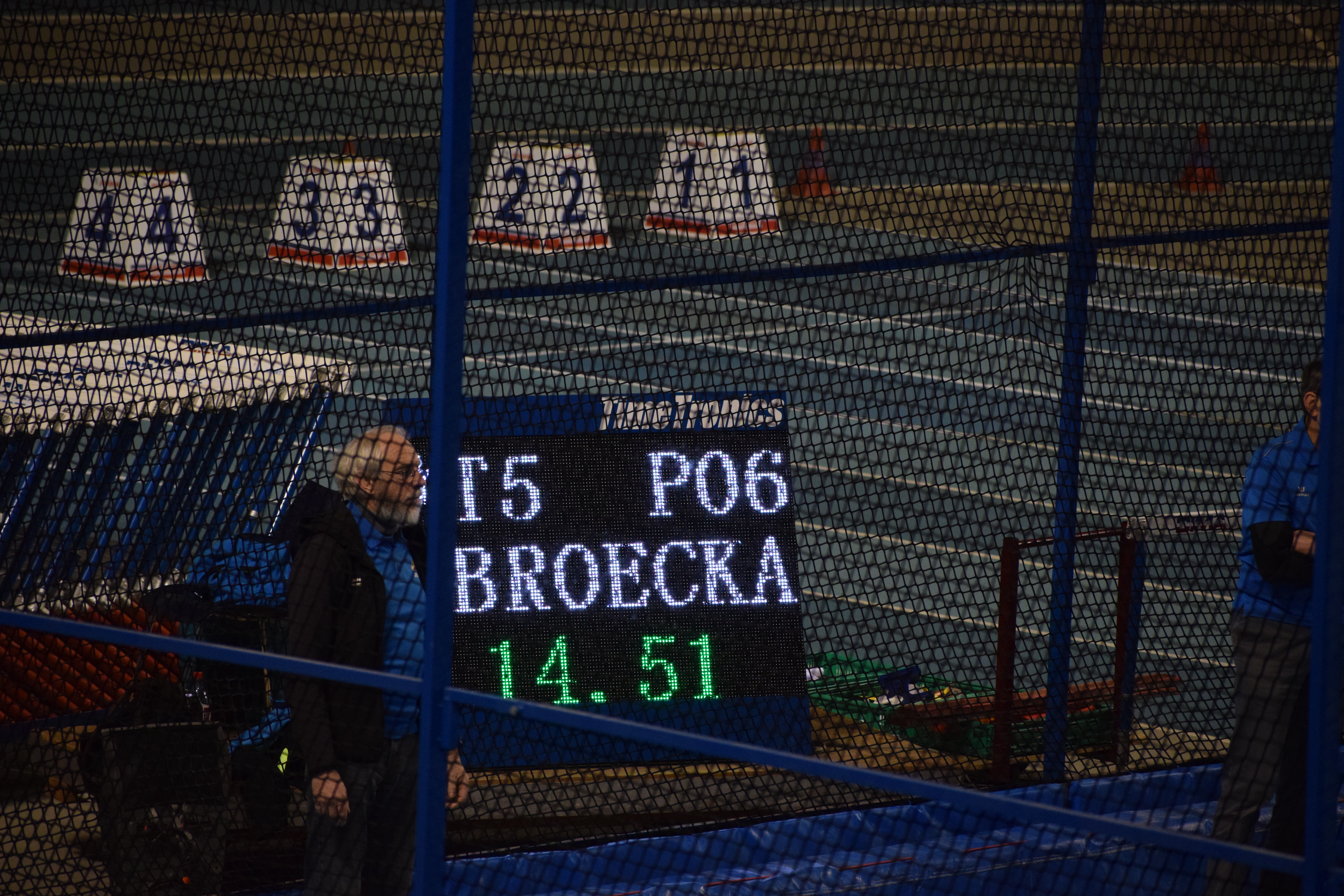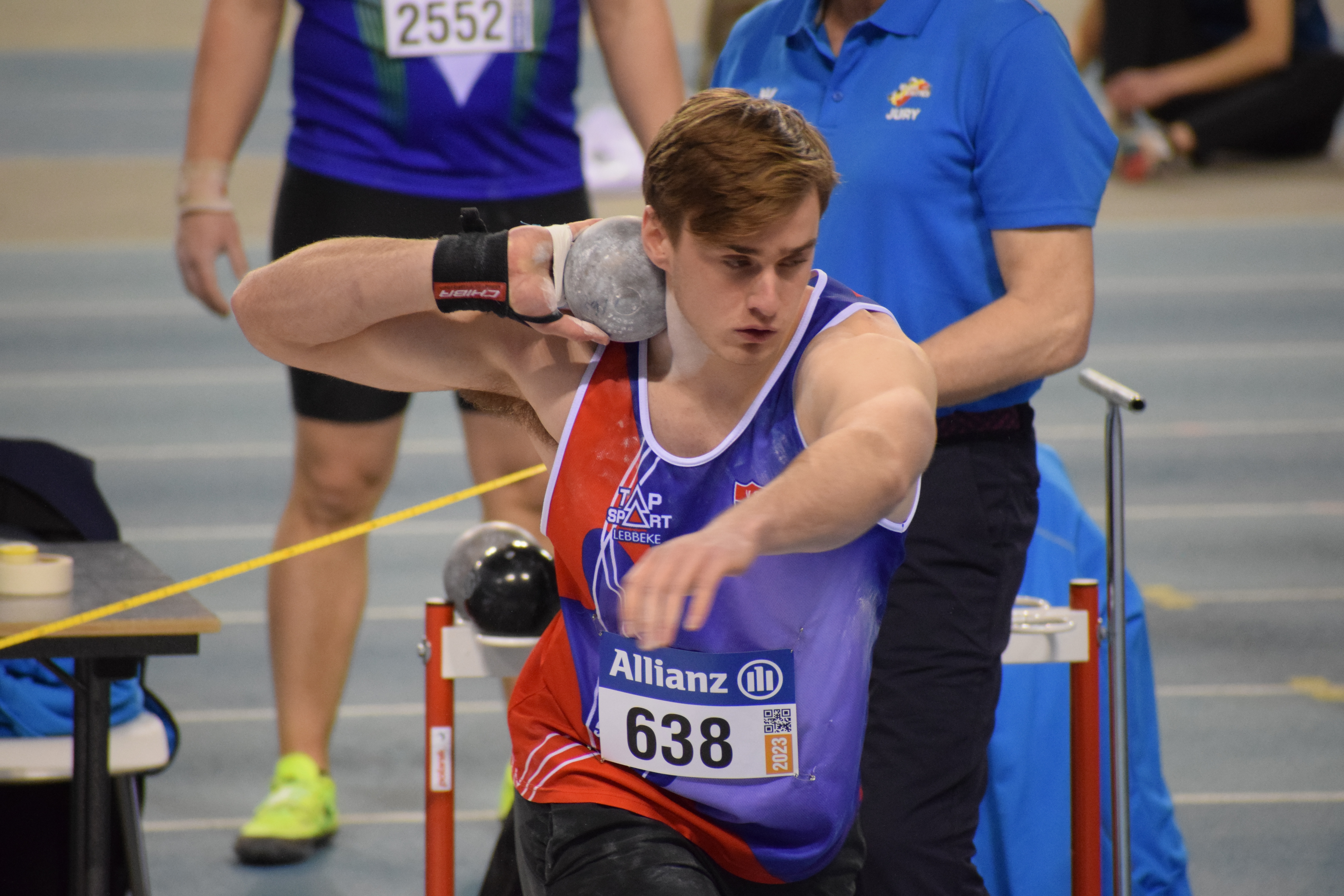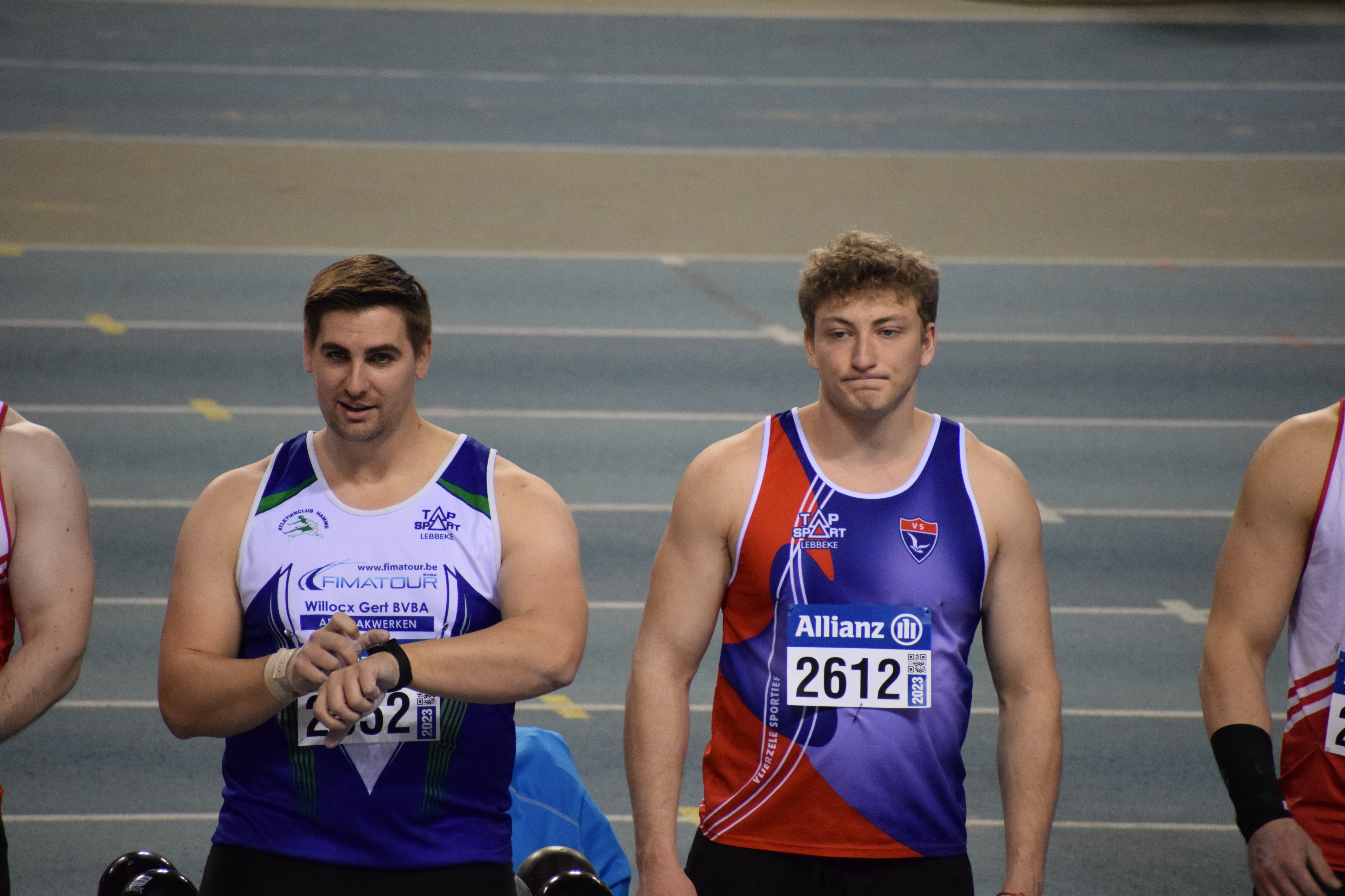 De jongste, de op één na jongste en de oudste deelnemer in het kogelstoten kwamen uit onze groep. Door een lopende weddenschap onder enkele atleten was Filip extra gemotiveerd om nog eens een mooie afstand neer te zetten. Met een 5de plaats en 14m83 (SB) bleef hij net voor Cédric. Voor Cédric was het nog wat wennen aan de 7,260kg zware kogel. Hij verbeterde zich worp na worp om uiteindelijk een knap nieuw PR van 14m51 te laten opmeten. Hij werd 6de. Andreas vond vandaag niet z’n beste draai en kwam tot 16m79 (SB), goed voor zilver en op slechts 1cm van goud. Even balen dus, zeker als je zijn 5de worp hebt gezien…