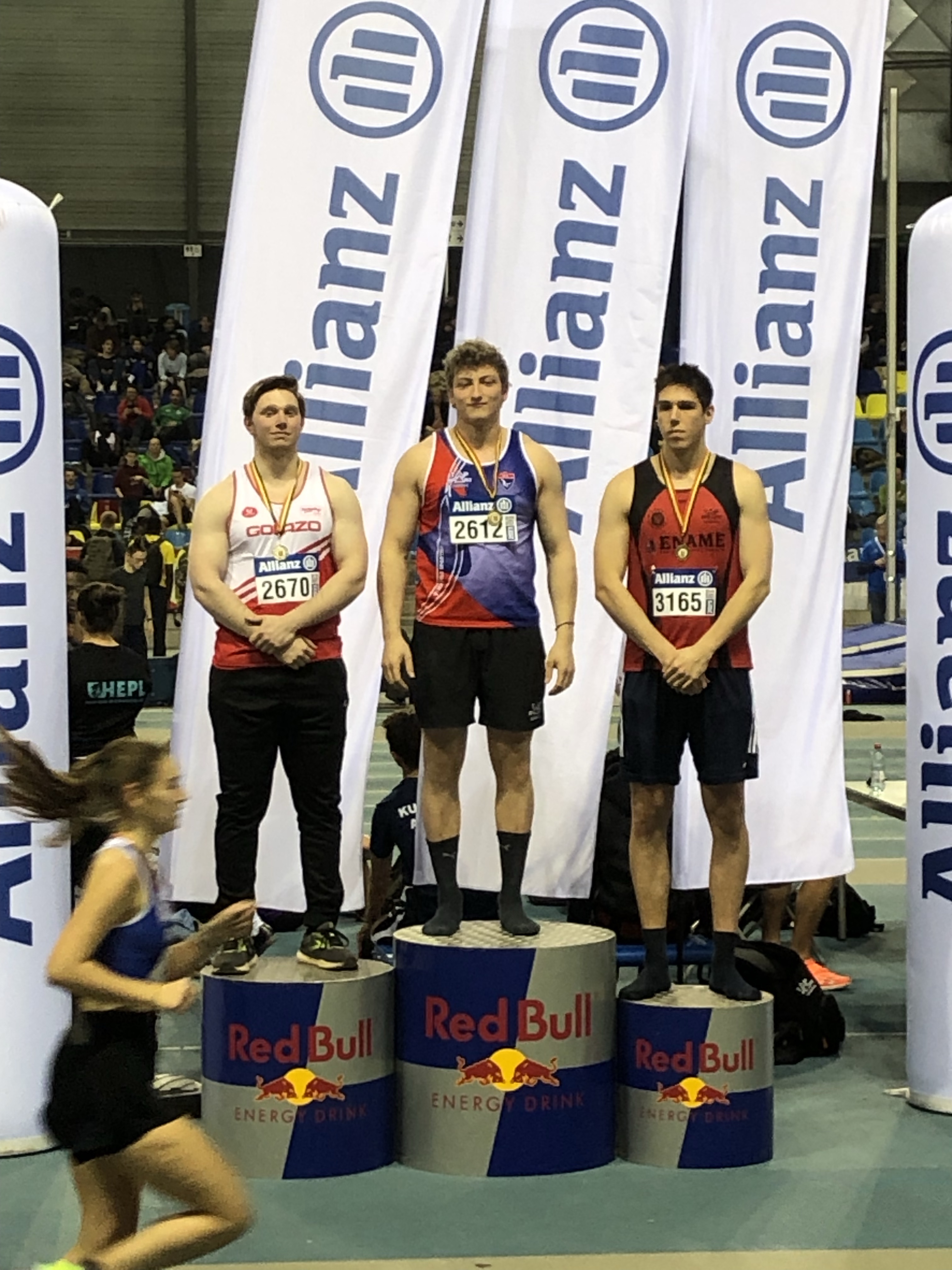 Arnaud & Leander waren ook gebrand op een goede prestatie, zeker na het missen van het BK AC en met het oog op hun Beloften BK van volgende week. Leander kon de verwachtingen vandaag niet waarmaken en kwam slechts tot 12m84. Maatje Arnaud deed het wel voortreffelijk met 13m91. Voor hem betekende deze afstand een nieuw indoor PR en een “Oudenaards” clubrecord!