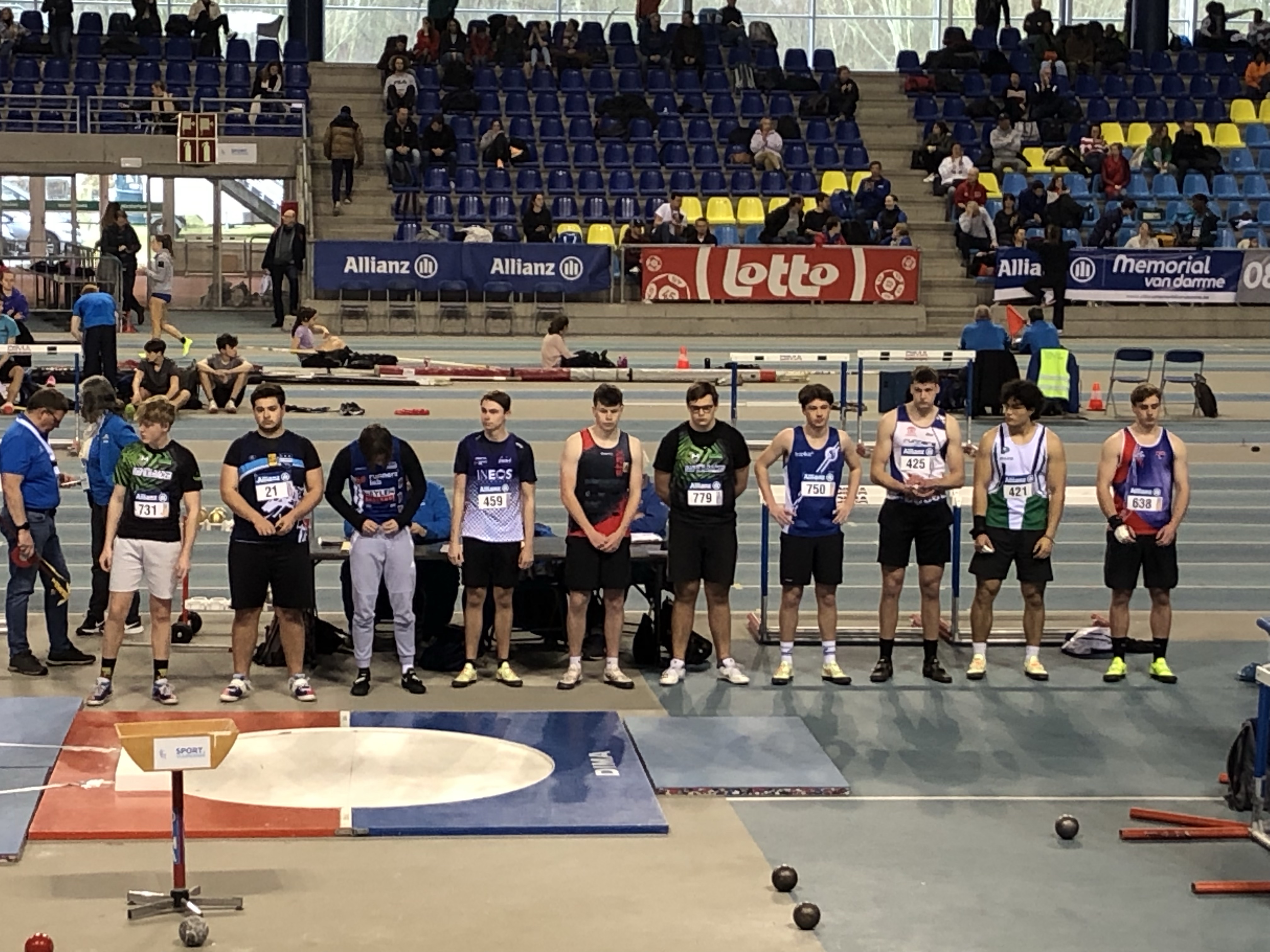 Bij de beloften mannen zagen we opnieuw een mooie strijd tussen Arnaud en Leander. Beide werkten eveneens een heel regelmatige wedstrijd af. Zo stootte Leander verschillende keren verder dan zijn seizoensbeste en kwam hij uiteindelijk op een 6de plaats terecht met 13m87. Ondertussen zagen we Arnaud zich bijna worp na worp verbeteren wat hem een beste prestatie van 14m47 opleverde. Hij strandde slechts op 2cm van het podium maar kon wel met een dik PR en clubrecord naar huis.