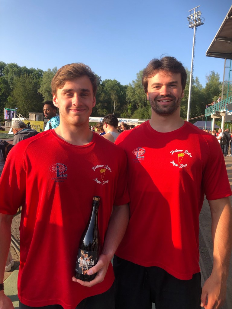 Het discuswerpen kondigde zich aan als een zeer hoogstaande wedstrijd met verschillende 50m en zelfs 60m werpers. Onze jongens deden het niet onaardig. Cédric begon met 45m54 zeer hoopvol aan zijn wedstrijd. Jammer genoeg kon hij zich niet meer verbeteren en werd uiteindelijk 8ste. Leander begon dan weer haast onherkenbaar aan zijn wedstrijd. Enkele mindere worpen volgende op een beloftevolle opwarming. Hij herpakte zich uiteindelijk met nog 2 knappe laatste worpen. Zijn beste worp vandaag was met 48m66 goed voor een 6de plaats. Na de examens gaat de 50m-jacht verder…