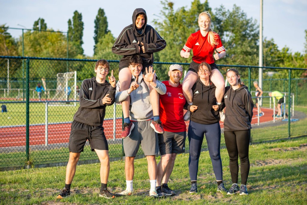 De man die vandaag in dit verslagje een aparte paragraaf verdient, is tweedejaars Robbe Van Hoorde. Vol overgave koos hij een jaar geleden voor onze groep, na enkele jaren aan afstandslopen te hebben gedaan. Week na week, maand na maand zagen we hem groeien in zoverre hij vorig weekend met 15m08 voor het eerst voorbij de 15m stootte. Een week later vlogen alle 6 zijn worpen ruim over de 15m en liet hij een nieuw PR noteren van 16m09! Daar is de 16m al… Het brengt hem op de 34e plaats allertijden bij de scholieren in België! In het discuswerpen was het vandaag wat minder met 37m83.