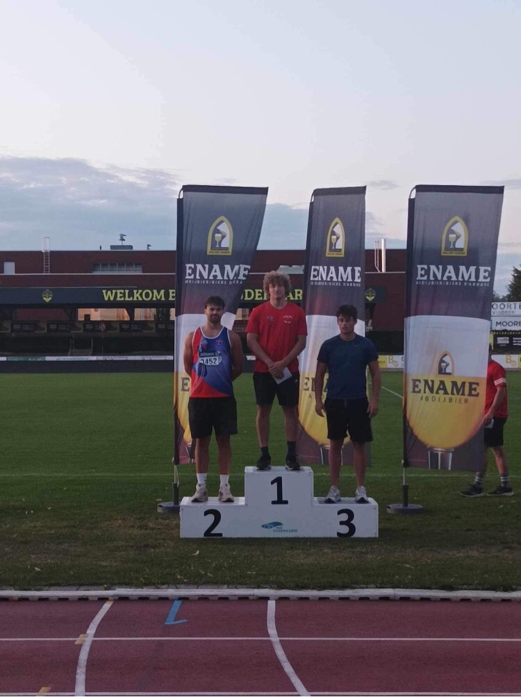 Onze mannen kwamen als enigste 2x in actie. In het kogelstoten deden ze het goed met enkele knappe worpen, zeker gezien hun vakantiewerk en de trainingsload van een dag eerder. Junior Cédric Broeckaert kwam met 16m95 heel dicht bij een PR want zijn kogel landde vlak naast de sectorlijn, aan het breedste stuk dus van de balk. Bij de senioren kwamen Andreas De Lathauwer en Leander Casteels tot degelijke afstanden met respectievelijk 16m91 en 14m71. Hun fysieke paraatheid, vooral dan bij Cédric en Andreas was dus wat minder en dat zag je in het discuswerpen. Ze kwamen respectievelijk tot 48m87 en 45m39, meters onder hun slechtste resultaat van het seizoen. We kunnen dan ook spreken van een discus-off-day 😉 . Wie wel op niveau acteerde was Leander met opnieuw een 49m22… zijn 5de wedstrijd dit seizoen boven de 49m.