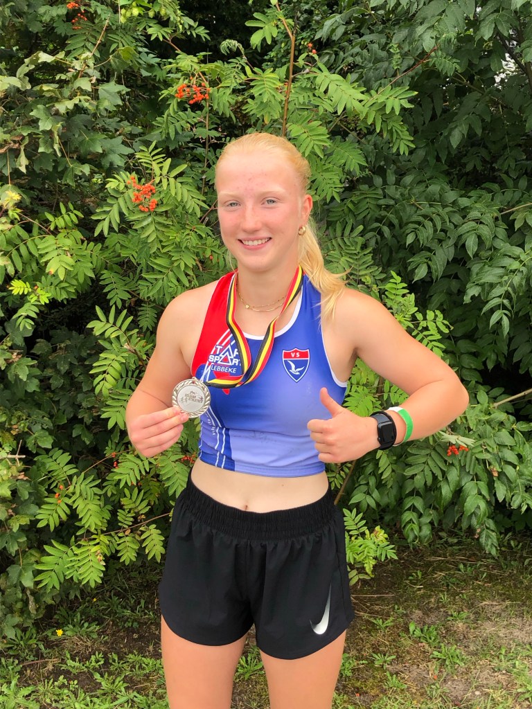 Met haar eerste gecontroleerde poging verzekerde ze zich onmiddellijk van een finaleplaats en de bijhorende extra 3 pogingen. Daarna groeide ze worp na worp, om in de 3de ronde 36m76 te laten opmeten. In de 5de ronde haalde ze pas echt uit met een worp op de 40m-lijn… maar deze kon ze net niet geldig afwerken, ze had letterlijk te lange tenen 🙂 . Sowieso mag ze terugblikken op een knappe, regelmatige wedstrijd waarin ze mentaal ook heel sterk was. Een referentiewedstrijd dus waar kan op verder gebouwd worden! Terecht stond ze achteraf te stralen met het zilver! Dikke proficiat, Silke!!!