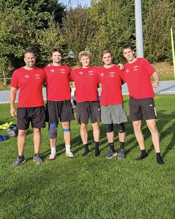 In het hamerslingeren presteerden onze mannen op niveau maar in het kogelstoten waren de prestaties eerder matig (om het woord slecht niet in de mond te nemen 😉 ). Een meerkamp kan soms raar verlopen… De grootste ontgoocheling werd eerst wat weggegeten en gedronken waarna ze met vernieuwde motivatie het discuswerpen aanvatten. Ook daar en in het speerwerpen waren de afstanden niet top. Het gewichtwerpen bracht wel wat soelaas met enkele mooie afstanden. Leander bracht zijn PR en het CR gewichtwerpen op 14m27 en sloot de werp5kamp af met een PR van 3218 punten, nog een clubrecord! Hij had slechts 17 puntjes voorsprong op Andreas die door een ondermaatse kogelprestatie vandaag de duimen moest leggen. Junior Cédric kende een heel moeizame meerkamp maar kon toch nog naar huis met een PR en CR van 3390 punten. Voor Arnaud was dit een eerste kennismaking met een werp5kamp alsook met het hamer- en gewichtslingeren, iets wat hij nog nooit eerder had gedaan.