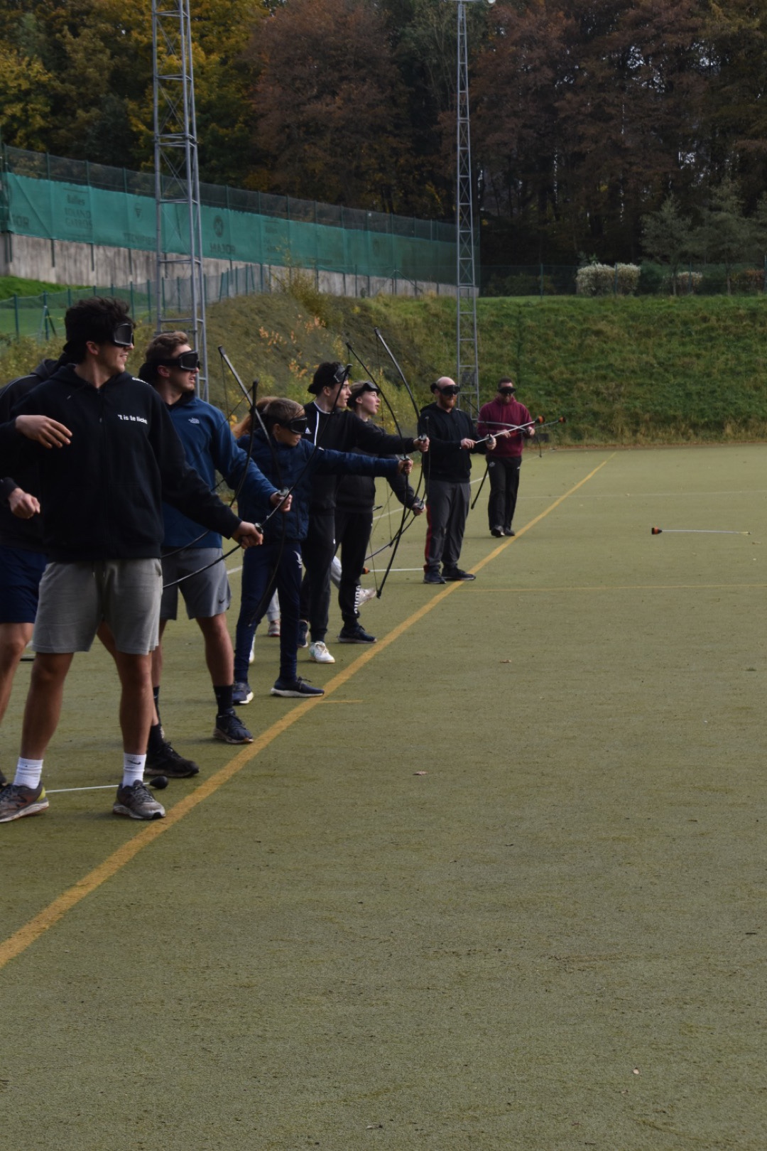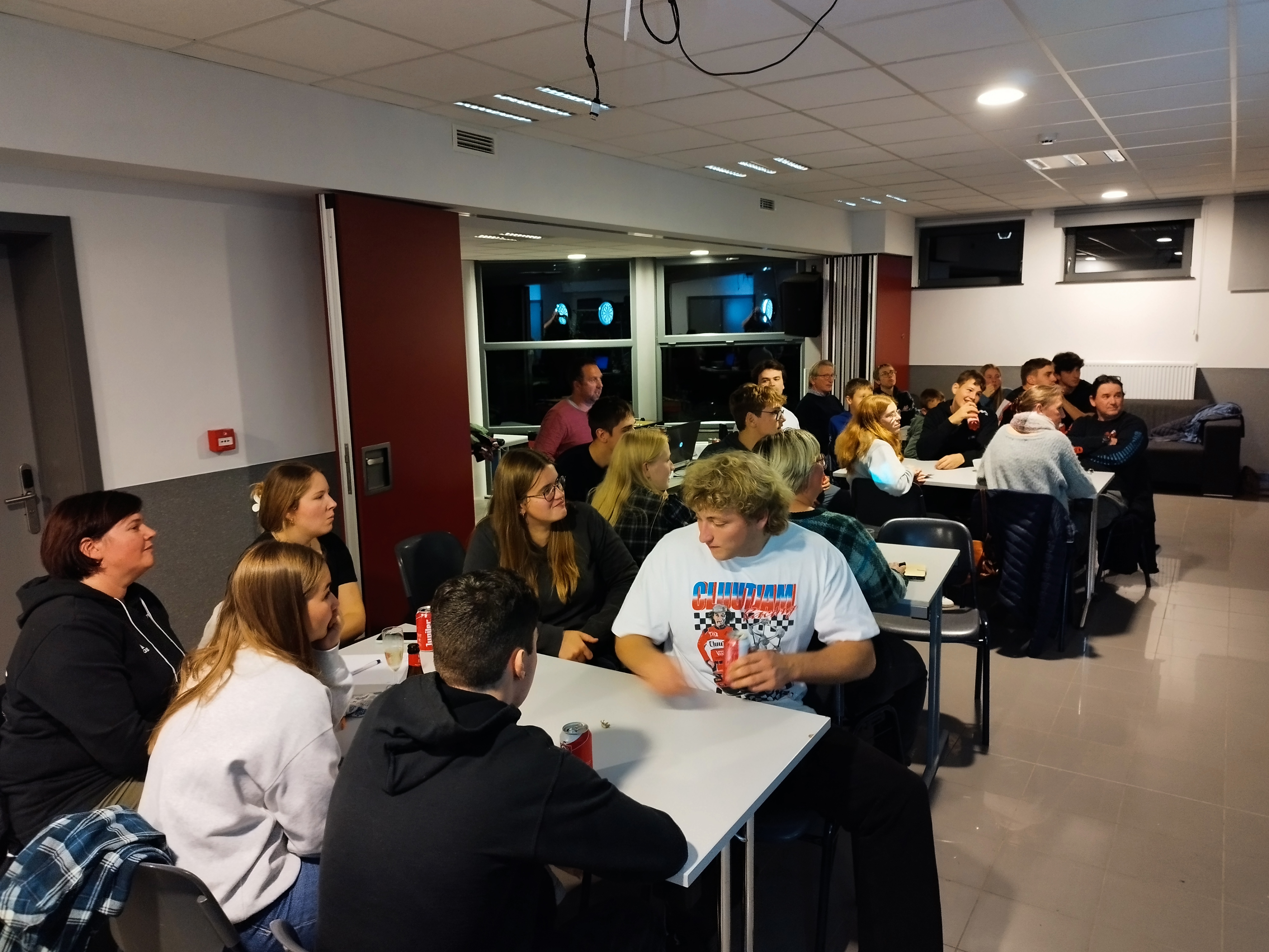 Dag 2 kwam aangewaaid met rukwinden tot 100km per uur. We vlogen als tornado’s naar het ontbijt. Na een korte, maar toch uurtje langere nachtrust, stond iedereen om 8uur stipt klaar. De ene al wat frisser dan de andere, heel fris was het niet, maar wel een beetje winderig (Lowie had immers een scheetje gelaten 😉 ). Na het ontbijt hebben we ons opgeladen voor een intensieve krachttraining. De boys hun “chest” werd “gepumped”, recordjes werden gevestigd en voor de jongere atleten was het een leerrijke power training en smaakte het ongetwijfeld naar meer. ‘s Middags kregen we alweer een overheerlijk middagmaal. Meerdere bordjes en dessertjes werden naar binnen gespeeld, want alle energie hadden we nodig in de namiddag. Na een snelle middagdut verzamelden we voor een toffe teambuilding activiteit. Zo kregen we de kans om onze innerlijke Robin Hood naar boven te halen bij een intensief potje Archery tag. Iedereen zette zijn beste beentje voor en we toonden weer dat we een echt team zijn! Vooral de laatste 10 minuten toen we allemaal samen op trainer Filip en Sam mochten mikken. Sorry voor de toekomstige blauwe plekken! Het avondmaal ging weer vlotjes binnen en erna verzamelden we in de zaal voor een gezellige avond samen zijn! Kamer D3 out, tot morgen!
