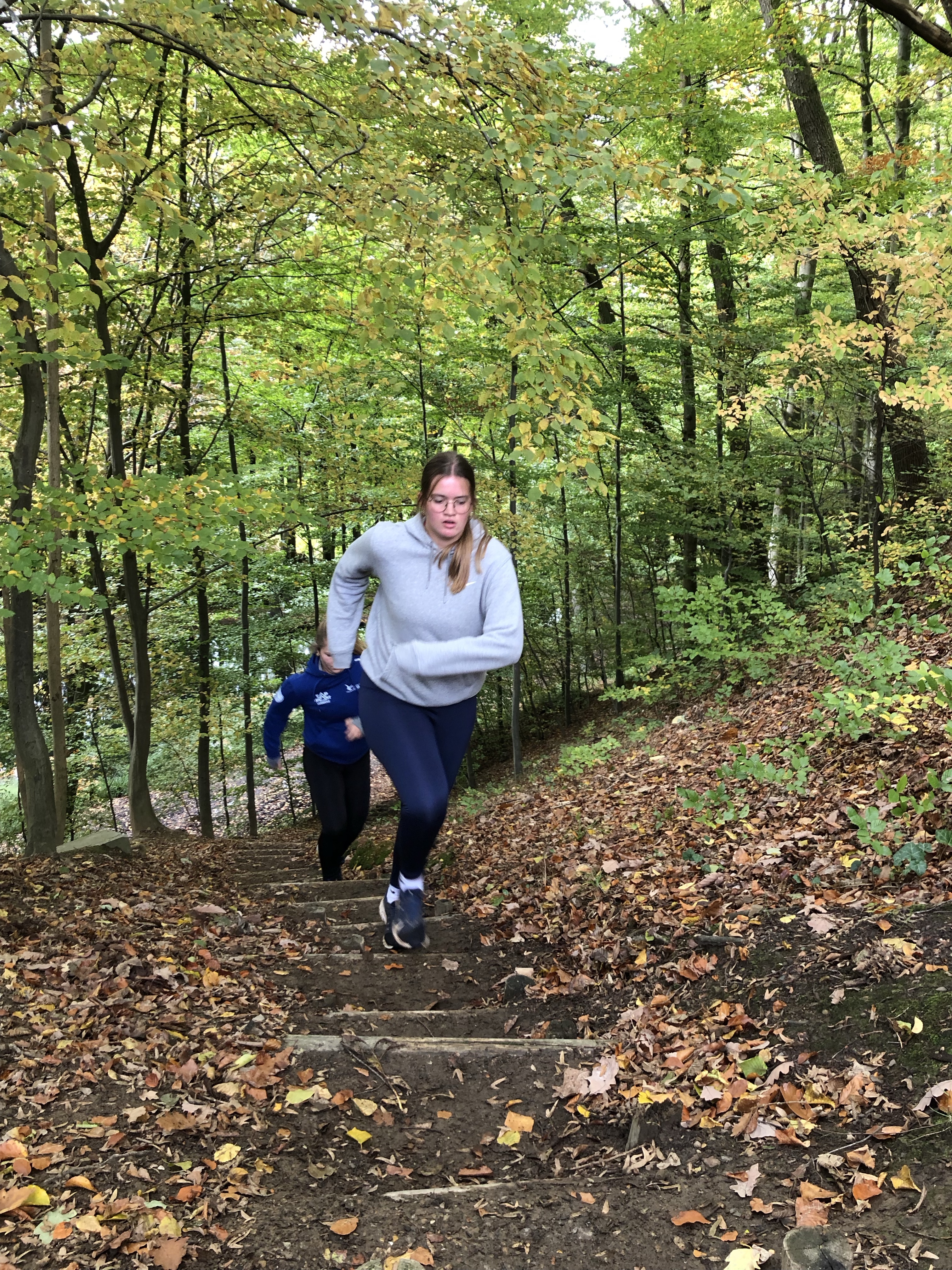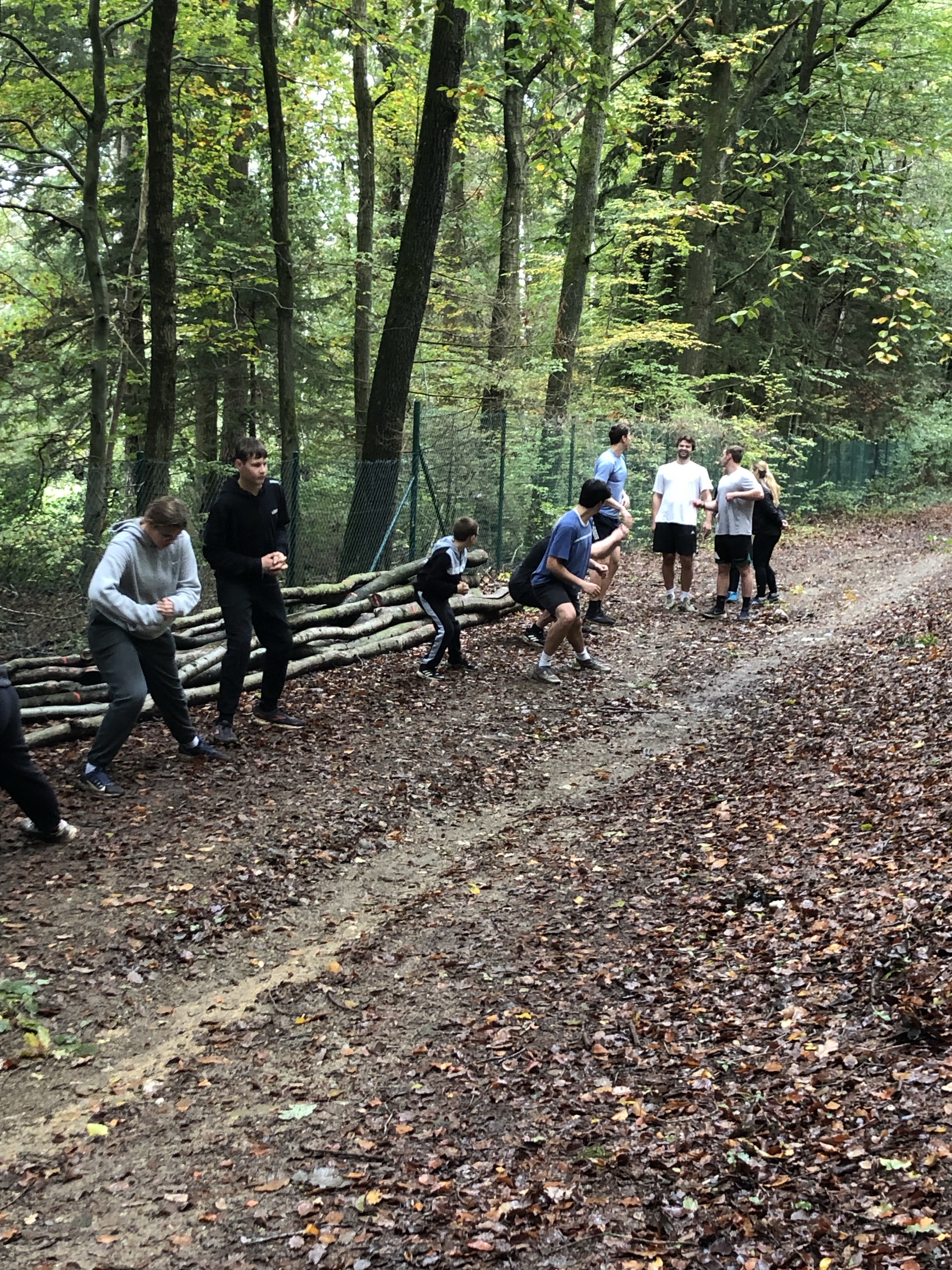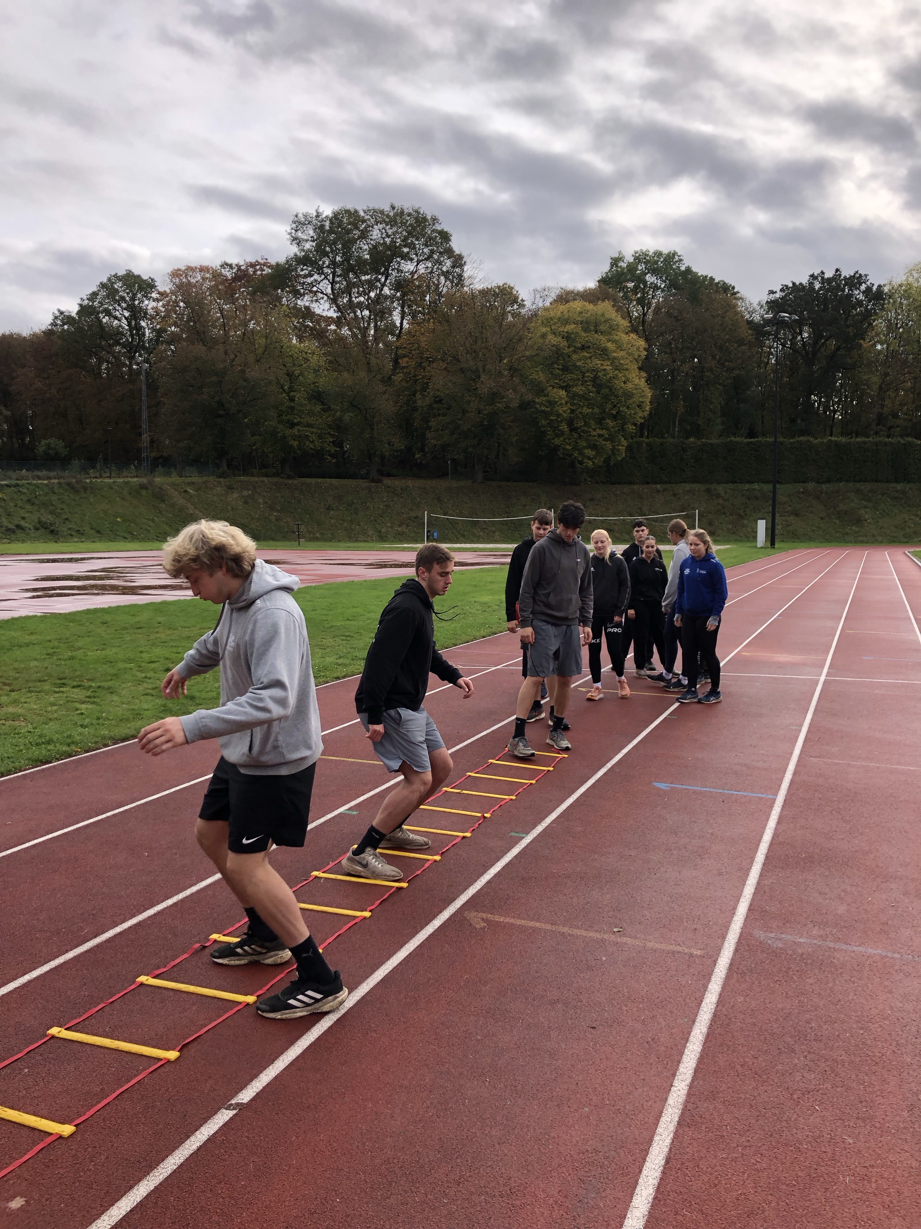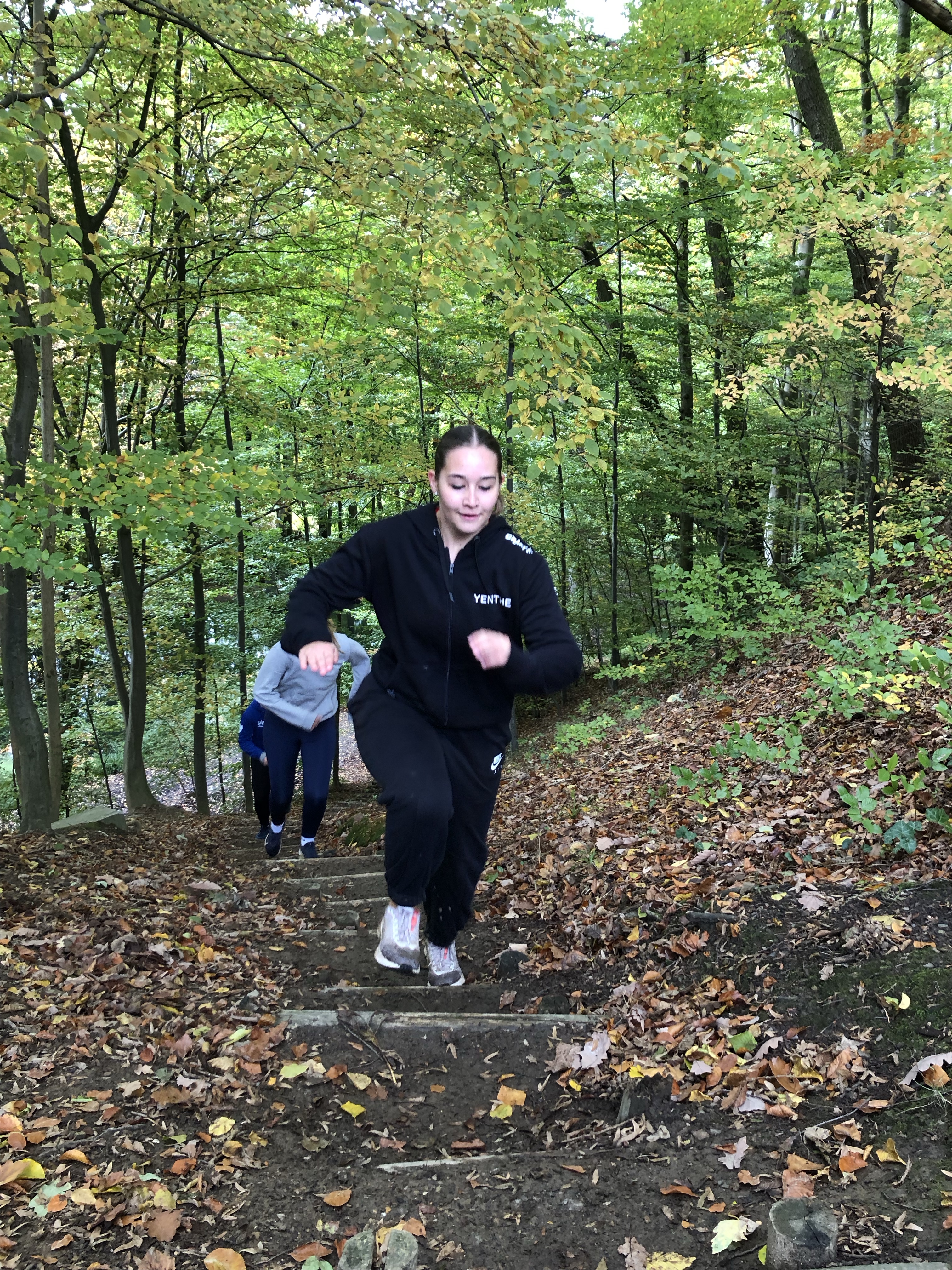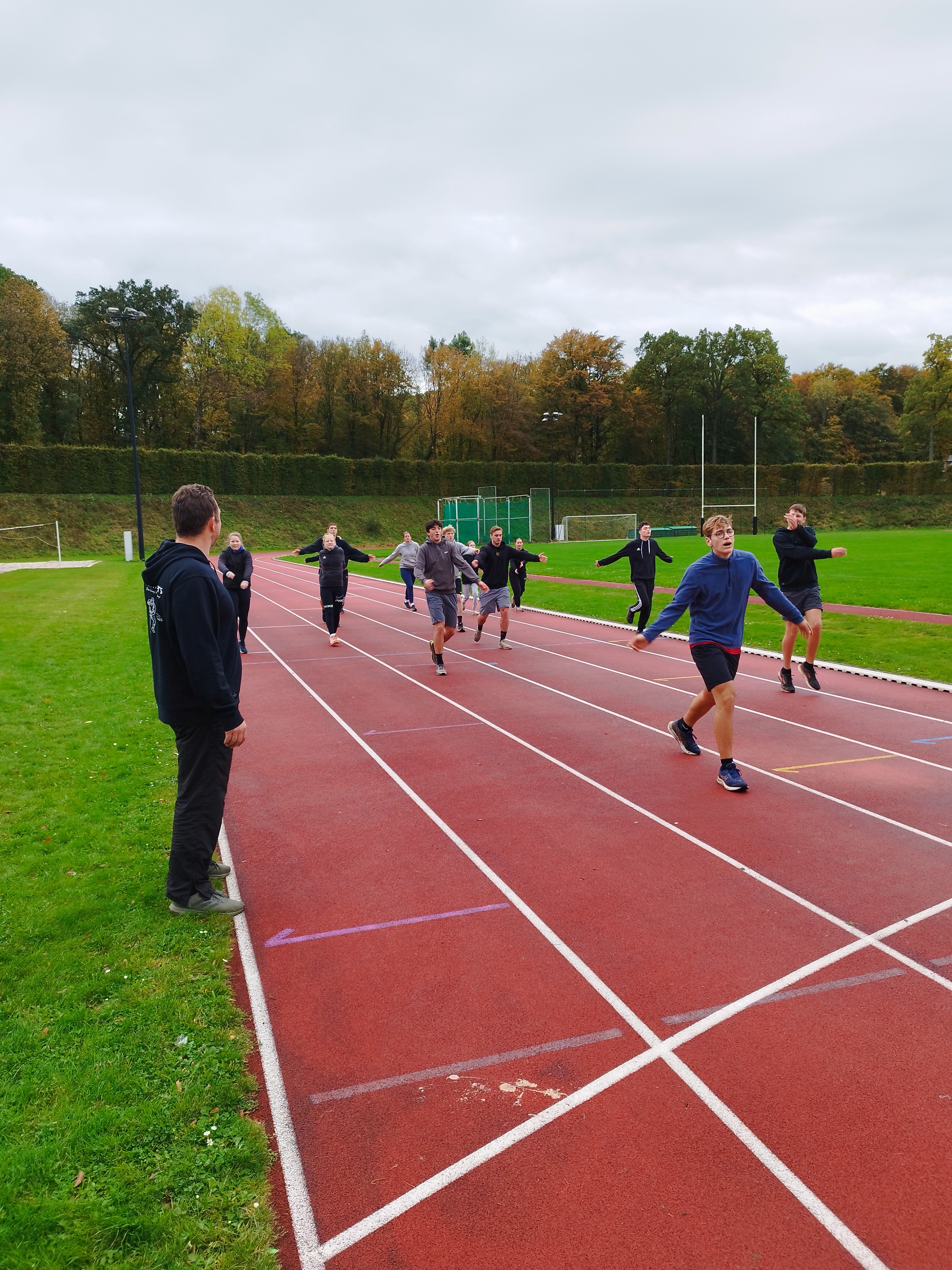 Op de laatste dag van onze herfststage ging de wekker bij de jongens zoals gewoonlijk om 7u50, Arnaud die begon zich ook zoals gewoonlijk klaar te maken om 7u63. Iedereen verzamelde aan het ontbijt om hun brandstof weer aan te vullen voor de laatste dag. Na het ontbijt moest onze kleinste speler (Leander) vroegtijdig vertrekken wegens een pumpdefect, hierdoor accepteerde hij dat er een kans was om nog een klein pumpje te missen. Het verschil moet er zijn, dat bleek maar weer al eens. Omdat de weergoden vandaag niet aan onze kant stonden, besloten we eerst onze buiten activiteit die in de namiddag gepland stond, te doen. We deden wat loop/coördinatie gerichte oefeningen. Daarna vertrokken we naar de o zo bevreesde trappen. Deze gingen best vlot bij iedereen, Lukas dacht zelf bijna 2 keer naar beneden te glijden i.p.v. te lopen omdat hij het te makkelijk vond. Bij het uitlopen besloten Cé en Andre de gains te verspillen en 5km te lopen. Daarna vertrokken we naar het laatste etentje en werden we aardig verrast door schnitzels op een bedje van tsaaaa.
