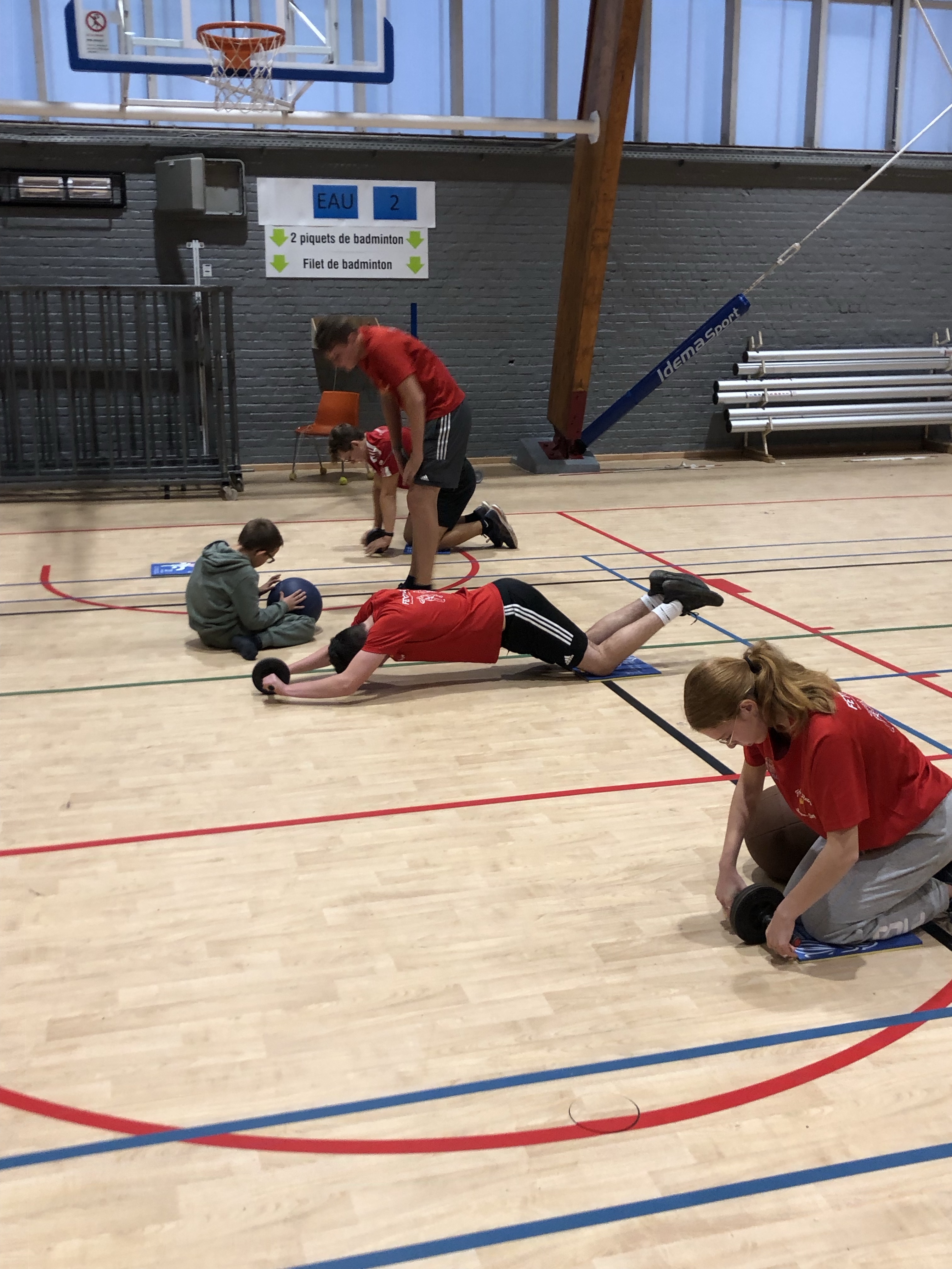 De middagpauze werd nuttig besteed aan een een dutje, bij de één met al wat meer kwijl op het kussen dan bij de ander. Door het slechte weer was de namiddagtraining voorzien in de zaal. Om de beentjes warm te lopen was er een basketbalmatch. Na dat de enkeltjes gebroken waren konden we van start gaan met enkele medecinebal- en stabilisatie oefeningen. Het einde van deze training was al meteen het einde van de stage. We keerden nog even terug naar onze chalets om alles in te pakken en voor een snelle wasbeurt, om dan allen huiswaarts te keren. Onder weg was er nog een hongertje dat moest gestild worden, dat deden we met enkele kipjes en burgertjes. Fijn dat jullie onze stage gevolgd hebben. Tot de volgende en keep up the real gains!