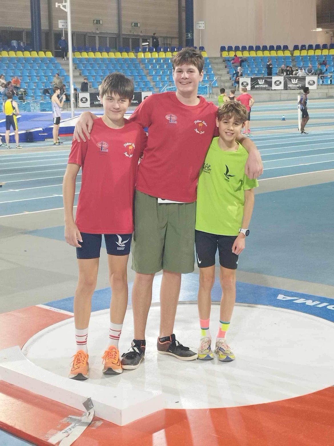 Tot slot kreeg tweedejaars cadet Lowie De Meyer het gezelschap van eerstejaars Keano Miserez en Basile Decock. Meerkamper Basile kwam in zijn allereerste wedstrijd met 4kg tot 7m17, een mooie afstand om op verder te bouwen. Keano kwam in zijn 2de wedstrijd tot 7m87 en dit voor het eerste met een volledige draai. Vanaf nu zal het ongetwijfeld crescendo gaan. Bij wie de prestaties ook mooi verder doorstijgen, is Lowie. Hij kwam vandaag tot 12m27, een nieuw PR maar kon jammer genoeg verdere worpen nog niet geldig afwerken. We kijken al vol spanning uit naar de volgende wedstrijden van deze jonge krachtpatsers.