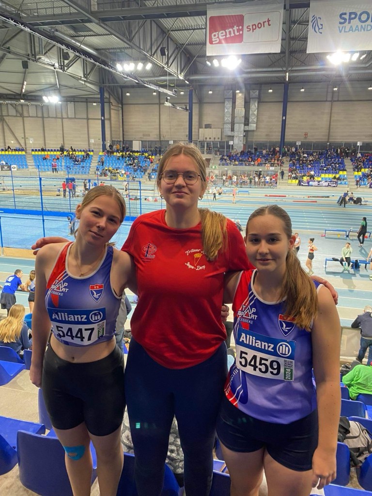 Daarna was het de beurt aan scholieren Loes en Yenthe om de ring te betreden. Yenthe stootte haar kogel 7m39 ver. Loes kon op haar beurt 10m39 laten opmeten. Ook zij gooiden niet ver genoeg voor de extra pogingen.