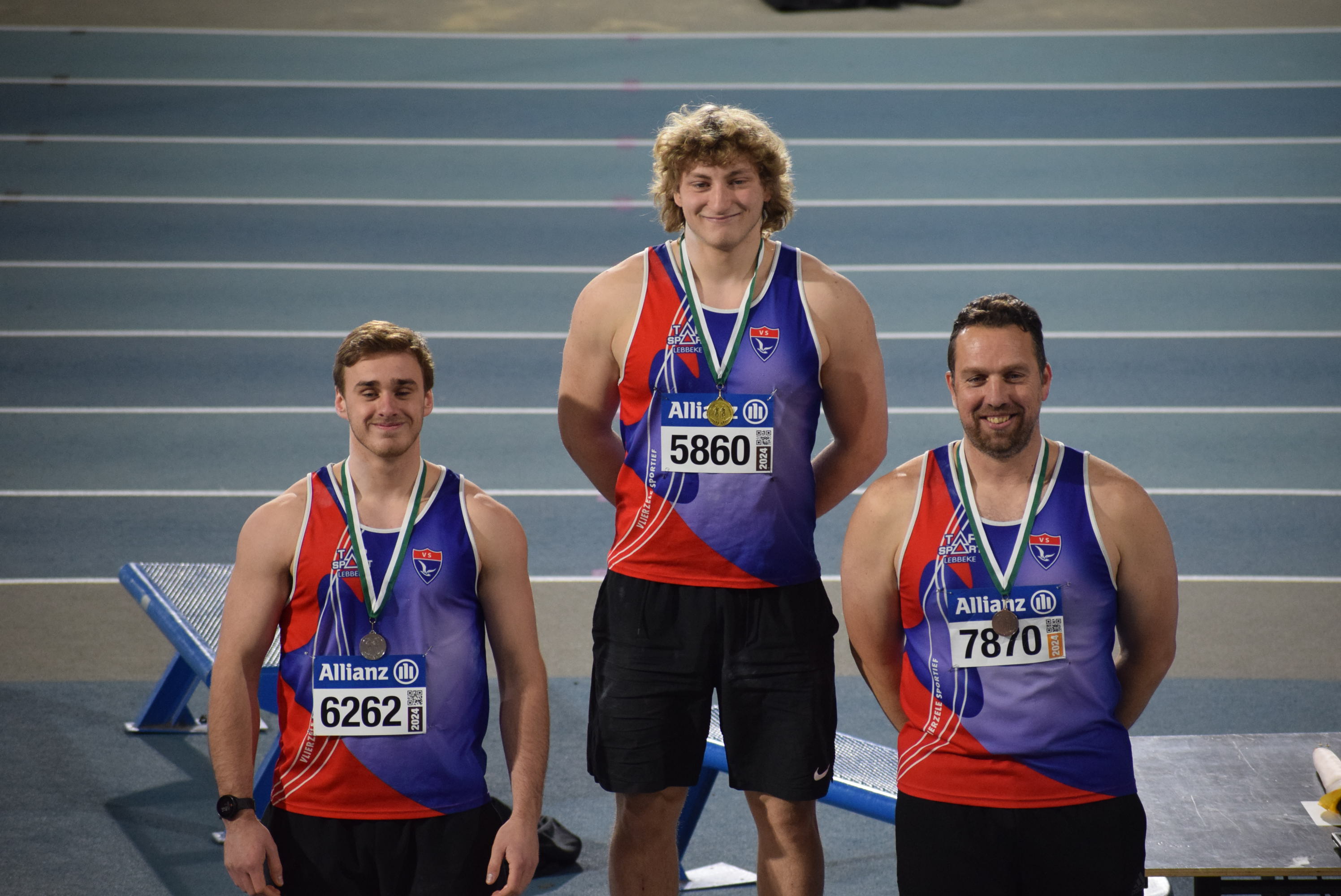 We zijn beland bij de laatste kogelwedstrijd van de dag, de seniors mannen. Hier kwamen maar liefst 5 van de 21 atleten uit onze groep, 3 beloften, een senior en een oudere master. Voor alle 5 werd het hun eerste optreden deze winter. Natuurlijk werd er uitgekeken naar wat Andreas De Lathauwer zou presteren na een periode van hard en goed trainen. Hij had immers op training al enkele verre bommetjes gedropt met de indoorkogel, afwachten of het hem ook reeds lukte met een ijzeren kogel. Met 17m04 en de Provinciale titel kon hij best tevreden zijn. De echt verre afstanden zullen voor later deze winter zijn, nu volle focus op de examens!