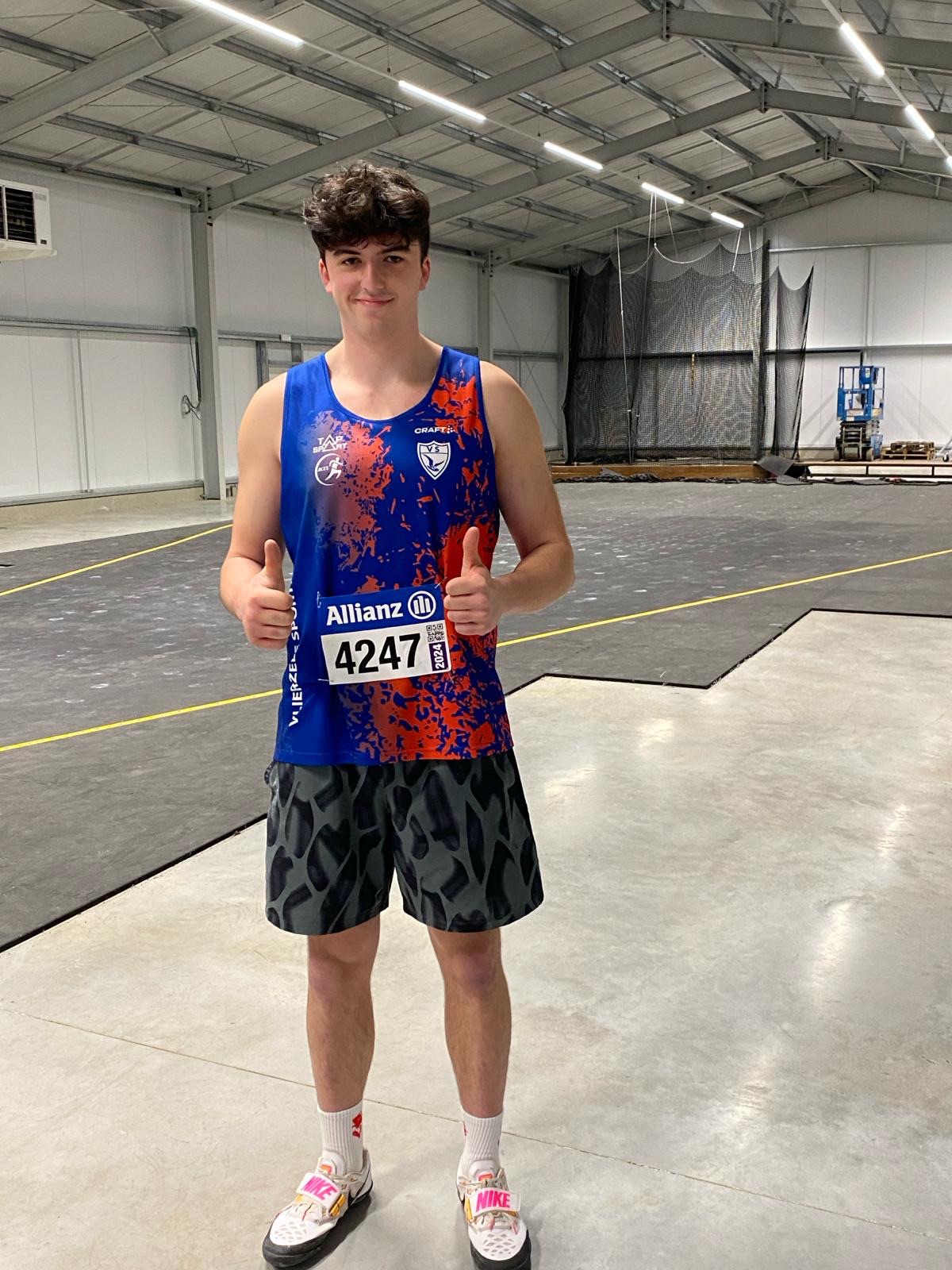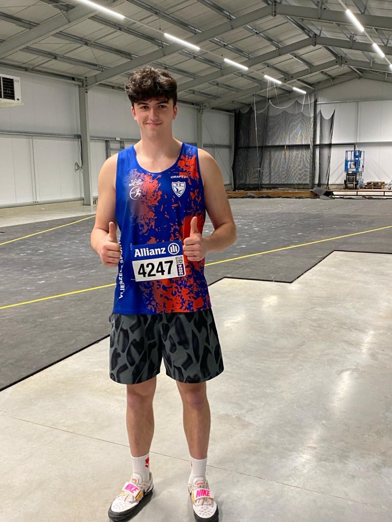 En of hij dat deed. Hij begon degelijk aan zijn wedstrijd met 14m36, tot hij in de derde beurt uitpakte met een stoot van 15m79. Het betekende een enorme verbetering van zijn oude PR met 99cm. Daarna pakte hij nog 3x uit met worpen boven de 15m… Wetende dat hij nog geen 2 jaar aan’t stoten is en deze winter 6 weken niet kon/mocht draaien door een vervelende enkelblessure, geeft deze prestatie veel motivatie en vertrouwen voor het komende outdoorseizoen. Proficiat Robbe!