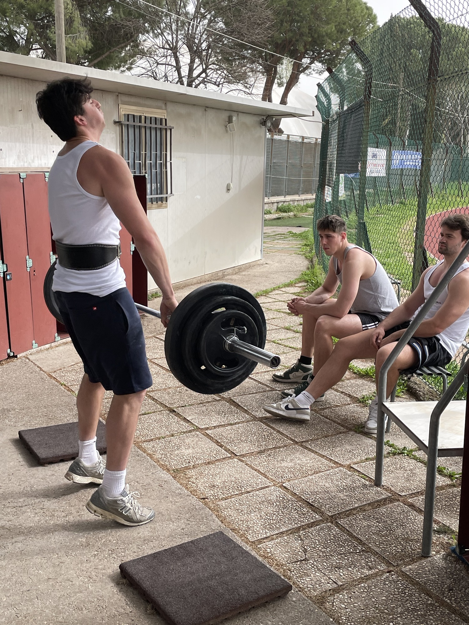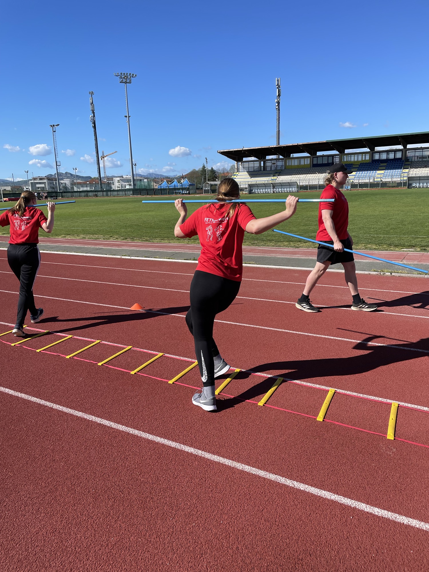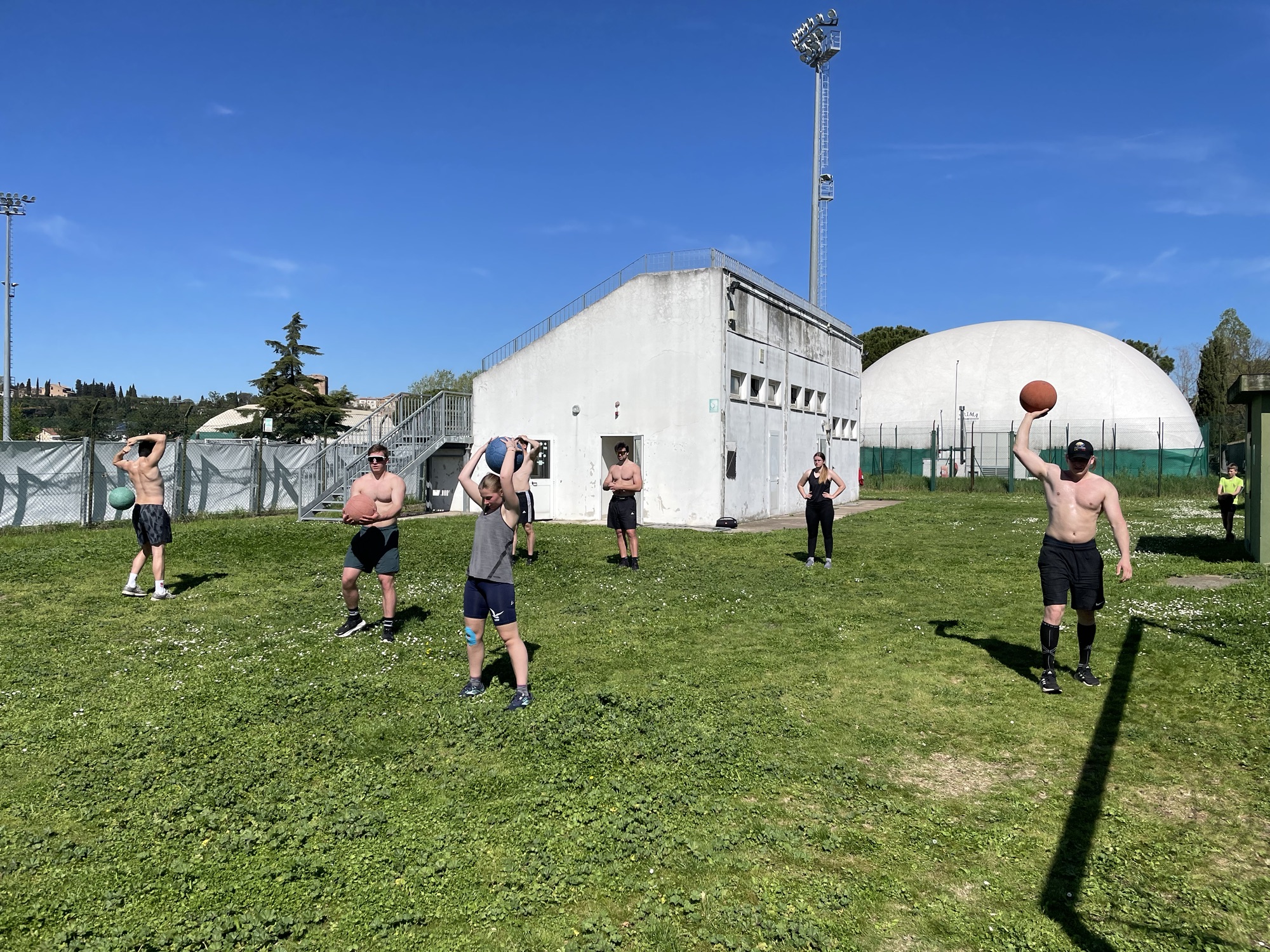 Vandaag stonden we allemaal met stijve spieren op. Gelukkig konden we ons in de voormiddag wat losmaken onder de stralende zon door wat ladder- en snelheidswerk. Hierna mochten we nog enkele schijven lanceren richting de maan omdat onze discustraining gisteren werd verkort door onverwachte regen. Na de middag hadden we kogel op de planning, we werden vergezeld door een Duitse collega (die juust André zou hitten 👀). Na wat imitaties onder oog van Filipi kregen we de toestemming om ons te gaan testen 💉op de lokale ring. Bezweet en voldaan keerden we terug naar ons hotel waar we eerst gingen genieten van ‘de lokale delicatesse’ (jammer genoeg niet de dames): gelato. Na een frisse duik om de spieren te relaxeren aten we ons vol (André nog voller dan die al was) en sloten we de avond in gezelligheid af. Ciao!