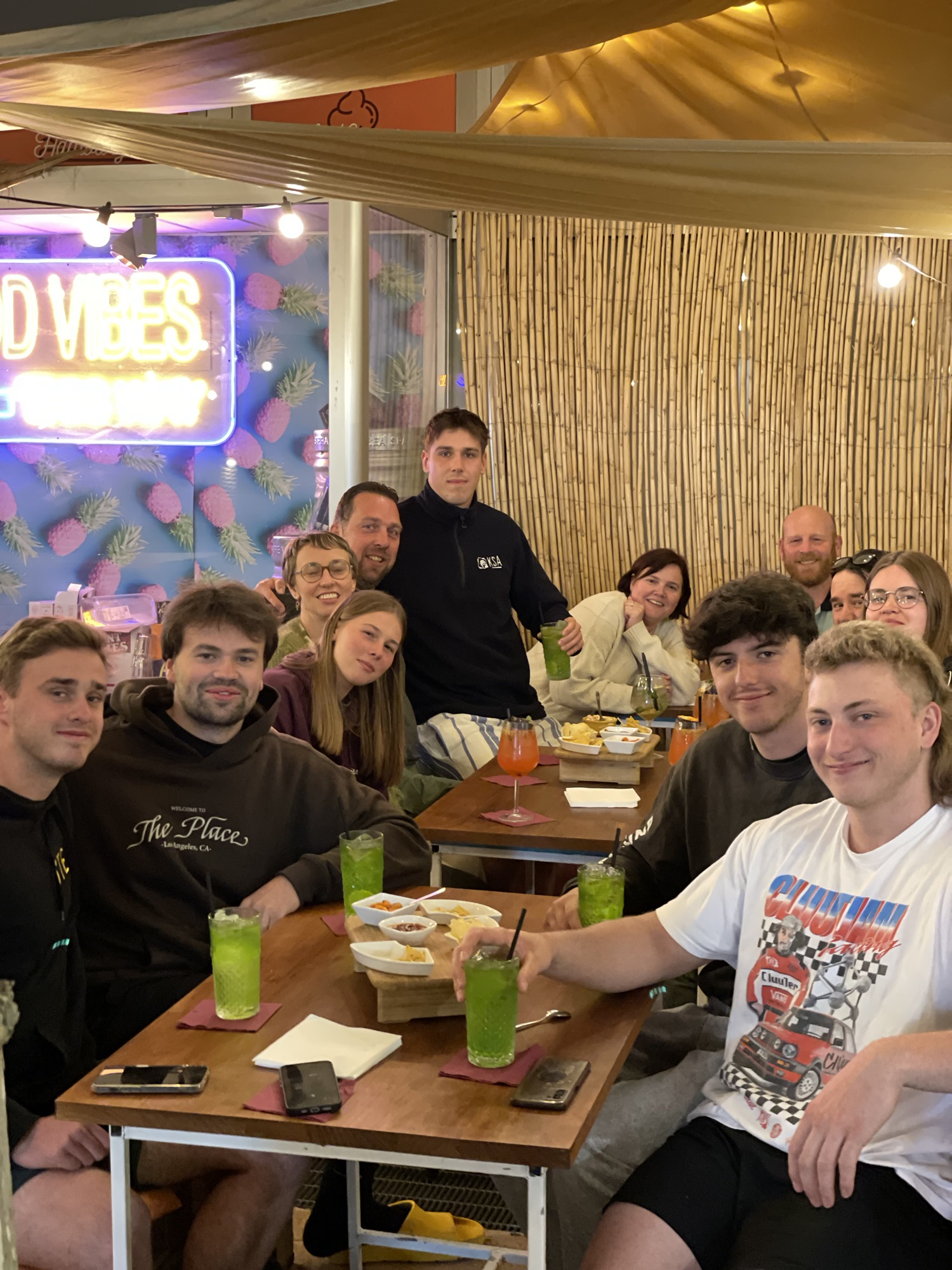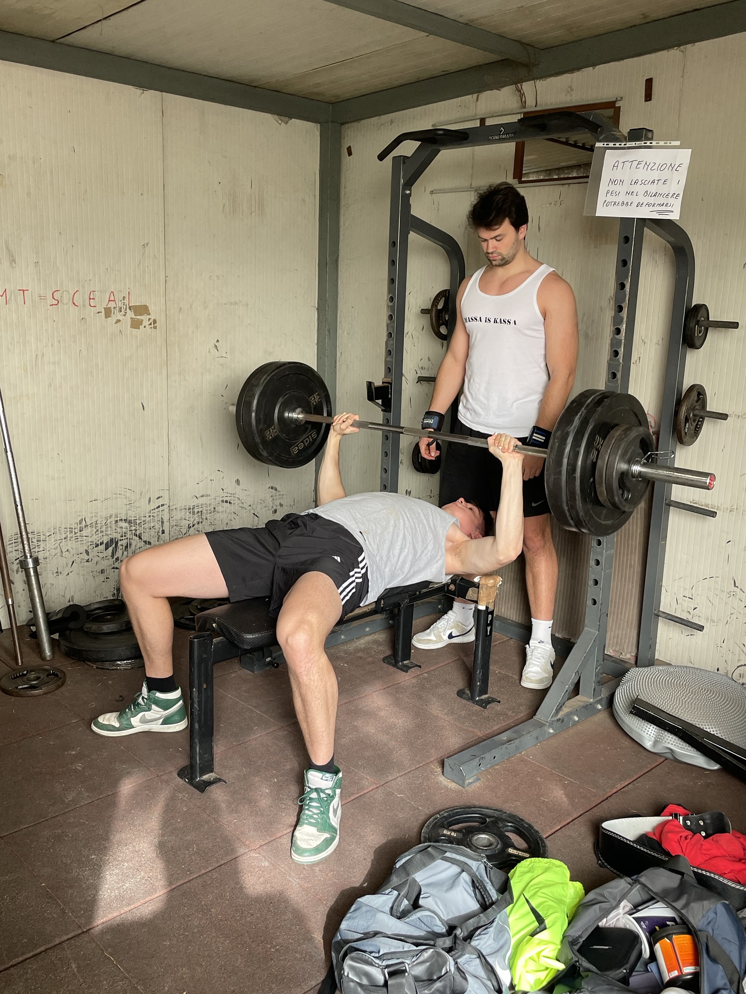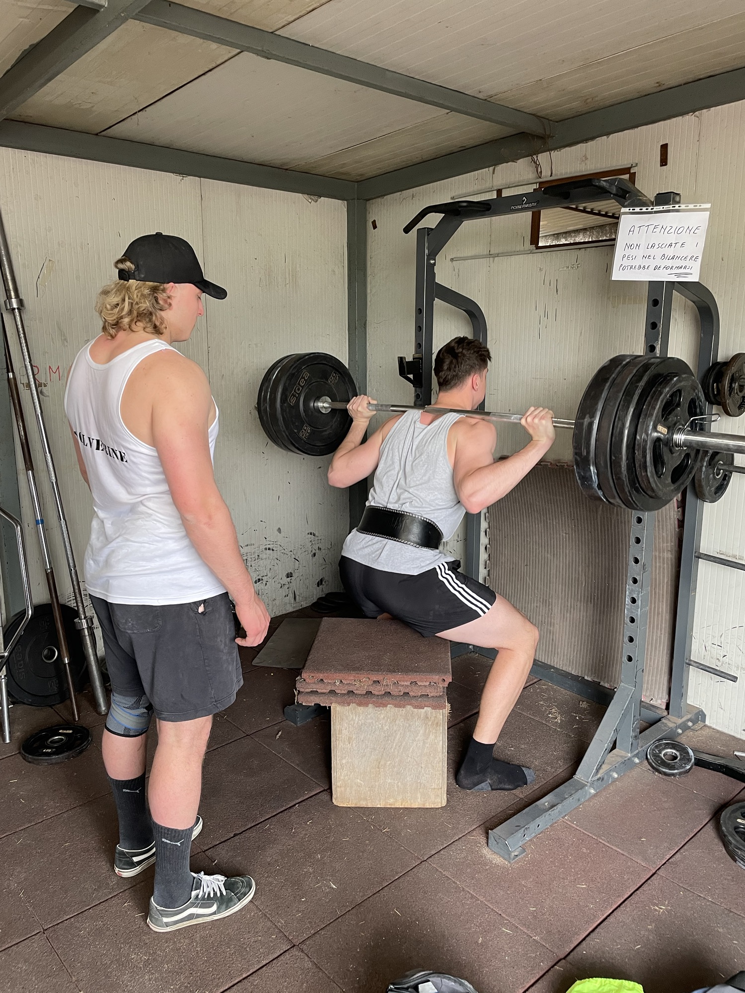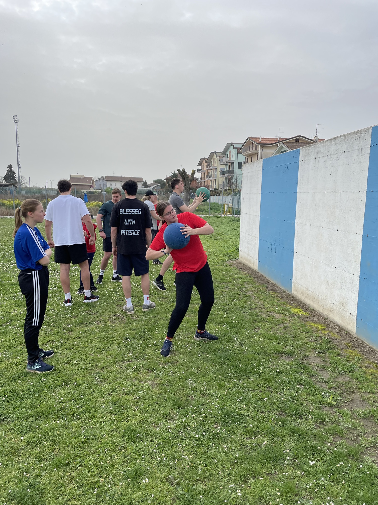 Vandaag stonden we allemaal met stijve spieren op. Gelukkig konden we ons in de voormiddag wat losmaken onder de stralende zon door wat ladder- en snelheidswerk. Hierna mochten we nog enkele schijven lanceren richting de maan omdat onze discustraining gisteren werd verkort door onverwachte regen. Na de middag hadden we kogel op de planning, we werden vergezeld door een Duitse collega (die juust André zou hitten 👀). Na wat imitaties onder oog van Filipi kregen we de toestemming om ons te gaan testen 💉op de lokale ring. Bezweet en voldaan keerden we terug naar ons hotel waar we eerst gingen genieten van ‘de lokale delicatesse’ (jammer genoeg niet de dames): gelato. Na een frisse duik om de spieren te relaxeren aten we ons vol (André nog voller dan die al was) en sloten we de avond in gezelligheid af. Ciao!