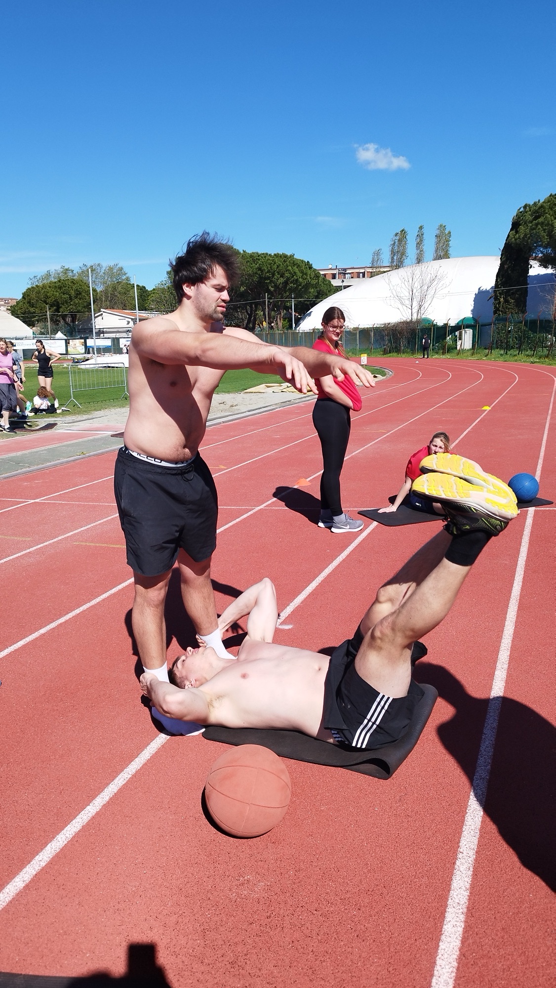Vandaag begonnen we onze dag zoals alle andere, met een vullend ontbijtje. In de voormiddag begonnen we met hordelenigheid, gevold door sprongen (elk op zijn persoonlijke hoogte). Daarna verplaatsten we ons naar de tribune voor nog meer sprongen op de trappen. De hete zon maakte deze training al te pikanter. Om de training af te sluiten deden we explosieve oefeningen met de medecineballen. Onderweg maakten we een pitstop aan de Eurospar om onze voorraad snacks bij te vullen. Toen reden we verder naar het hotel voor een lekker middagmaal.