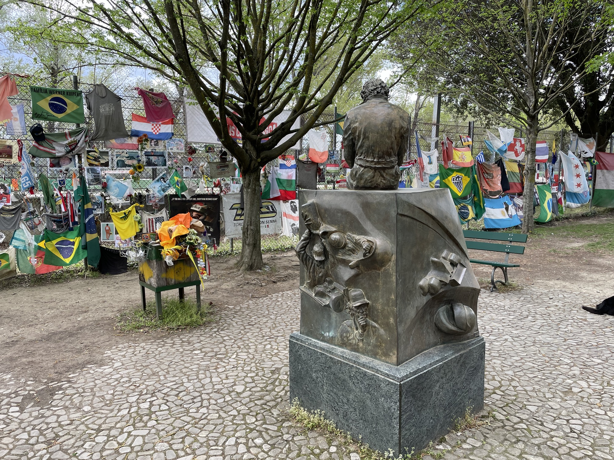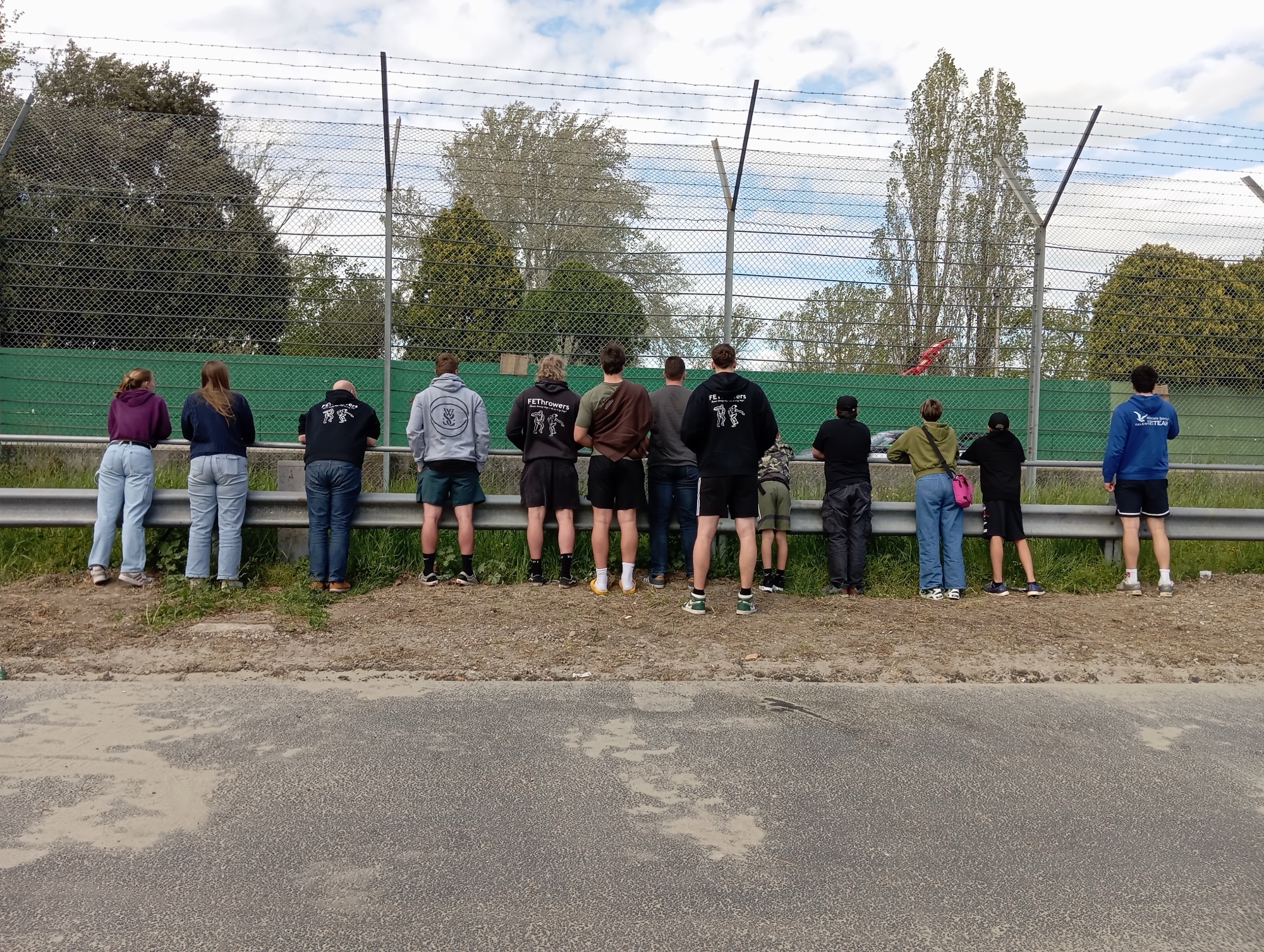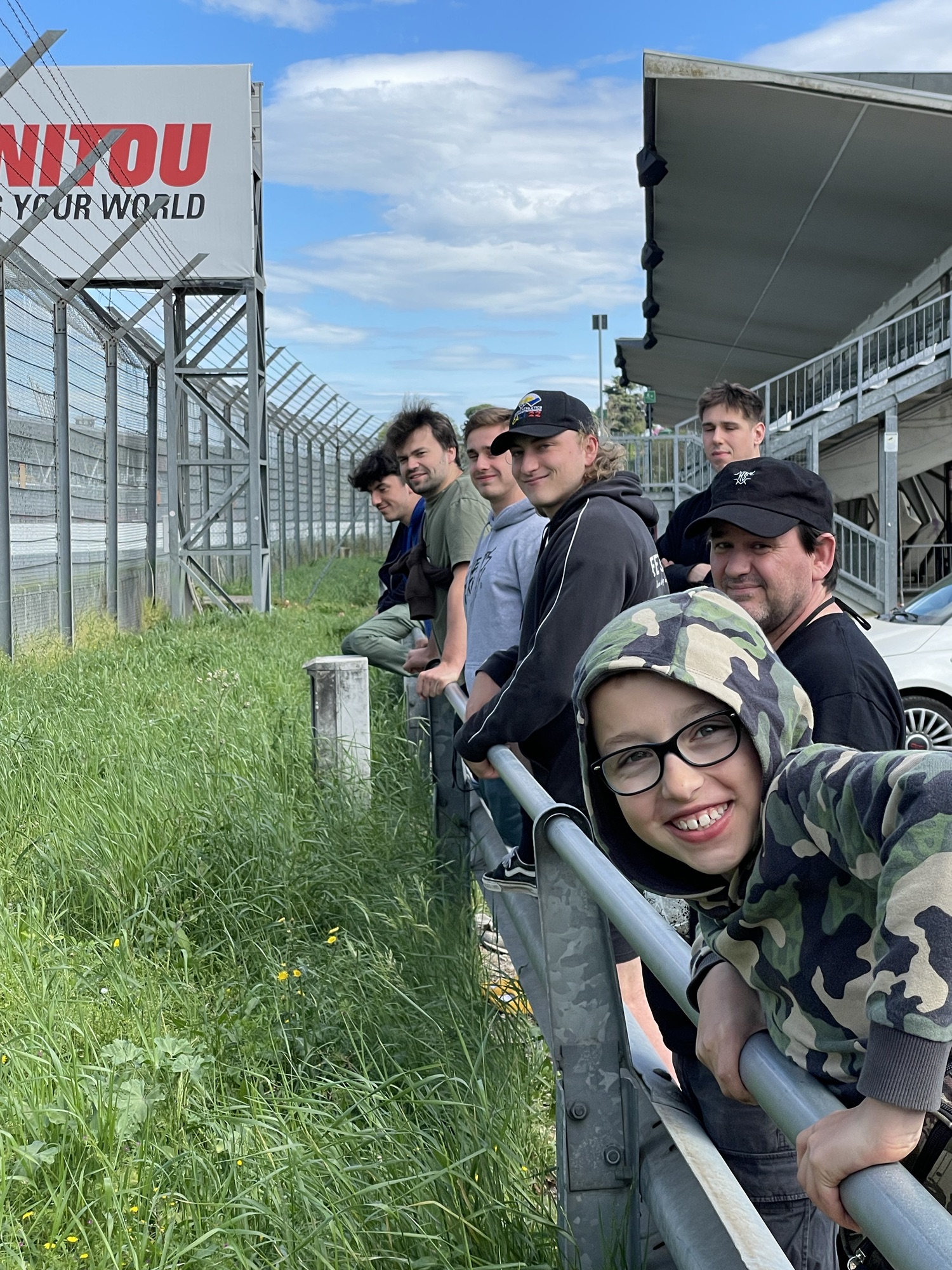 In de namiddag kregen onze spieren even rust en trokken we met de groep richting Imola. Eerst gingen we naar het werelberoemde racecircuit. Een bezoek aan het standbeeld van Senna met het geluid van brullende Porches en Lamborghini’s liet een diepe indruk na. Verder vergaapten we ons, strategisch opgesteld in de bochten, aan de krachtige bolides die ons aan impressionante snelheden voorbij bulderden.