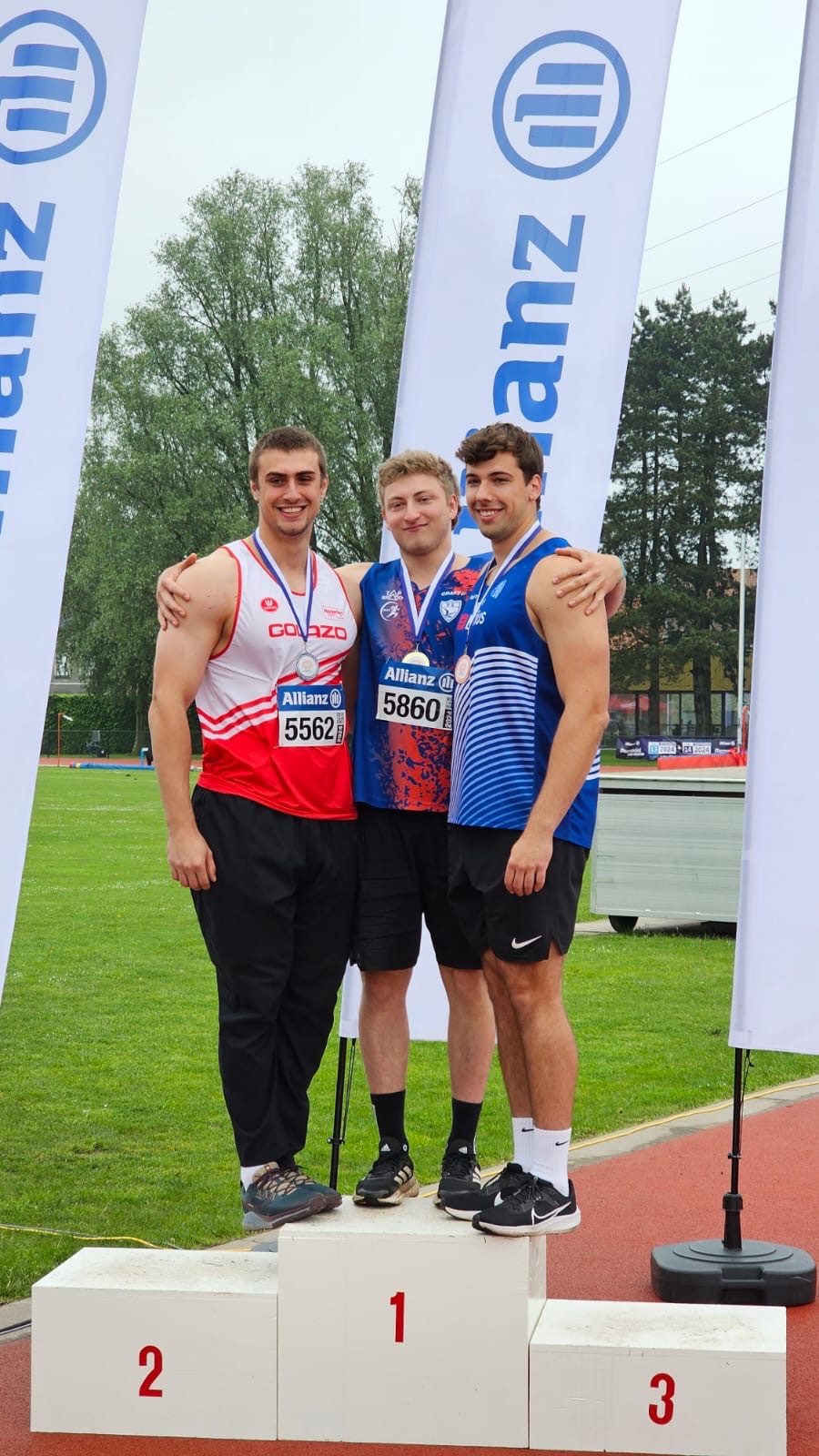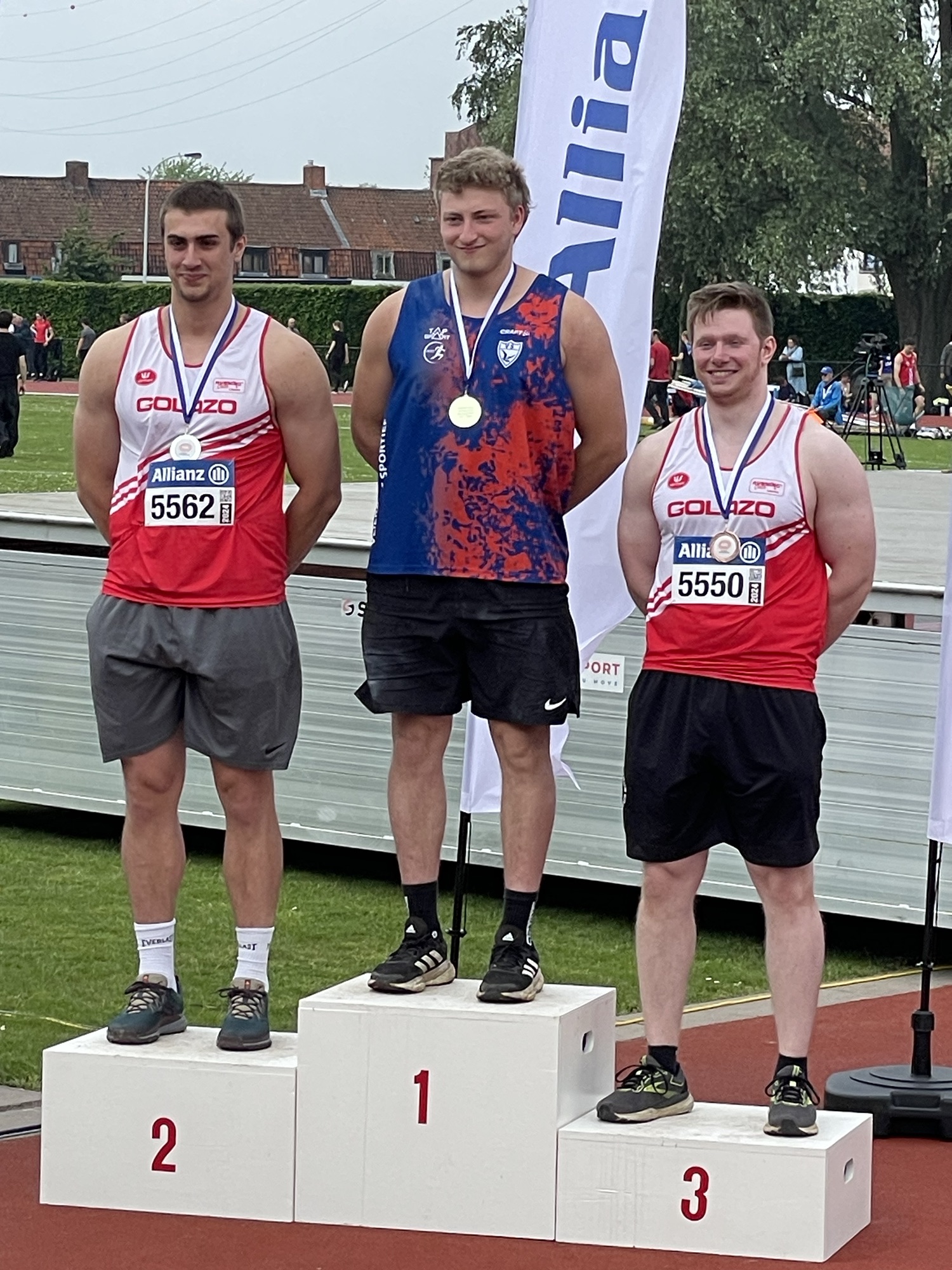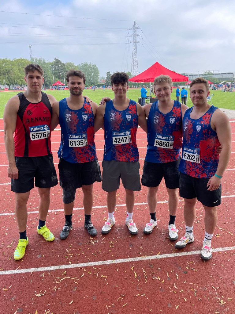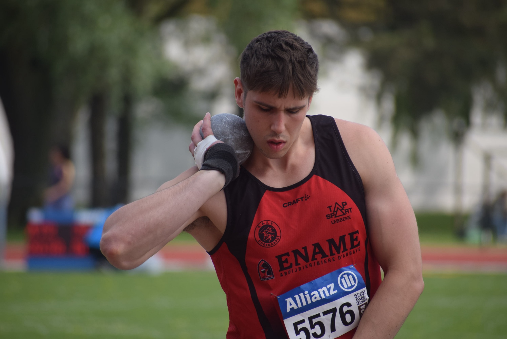 Na de middag kregen onze 4 “Big Boys” het gezelschap van eerstejaars junior Robbe Van Hoorde. Van de 10 deelnemers aan het kogelstoten kwamen er maar liefst 5 uit onze trainingsgroep. en het werd nog beter want alle 5 slaagden ze er in de finale te halen. Ongezien toch? Het was opnieuw Andreas die met 18m26 en een regelmatige reeks de wedstrijd won en zijn 2de gouden medaille mocht gaan ophalen. Op de 5de, 6de, 7de en 8ste plaats volgende dan respectievelijk Cédric (15m32), Leander (14m66), Arnaud (14m28) en Robbe (13m95). Voor zowel Cédric als Leander was dit een seizoensbeste, voor Robbe zelfs een nieuw PR!