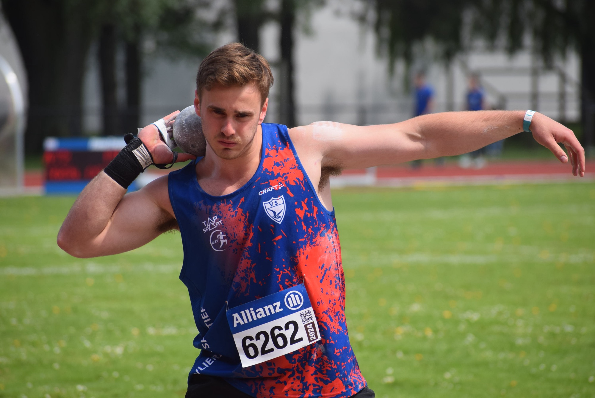 Om 10u30 mochten onze mannen beginnen met het discuswerpen. Daar zagen we belofte en man in vorm, Andreas De Lathauwer met 52m38 de Vlaamse titel veroveren. Een ondankbare 4de plaats was er voor Leander Casteels met 48m27. Arnaud De Cremer (ASVO) kon dan weer met een degelijke 44m99 de 8de plaats bemachtigen. Cédric Broeckaert wierp elke worp wat verder maar kwam met 44m78 (9de) slechts 18cm tekort voor een finale plaats en 3 extra pogingen.