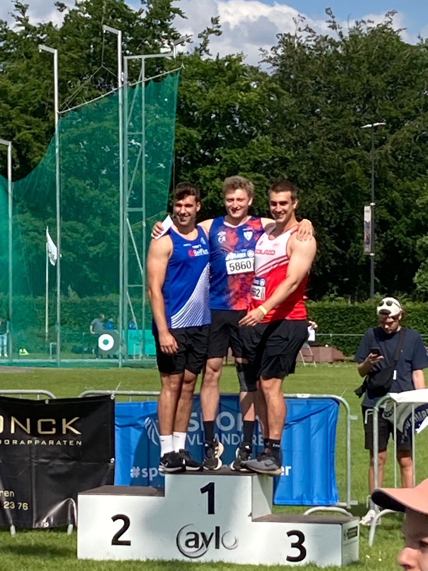 Tijdens de Flanders Cup te Lokeren op 9 juni kwam belofte Andreas De Lathauwer in actie in zowel het kogelstoten als discuswerpen. Door de positieve flow waarin hij nu al enkele weken sterk presteert zijn er altijd wel wat verwachtingen, vandaag was dus niet anders. In beide nummers liet hij tijdens de laatste training heel straffe prestaties zien waardoor de verwachtingen nog wat extra stegen. Als je dan die verwachtingen ook nog kan waarmaken, ben je “ne grote meneer”!