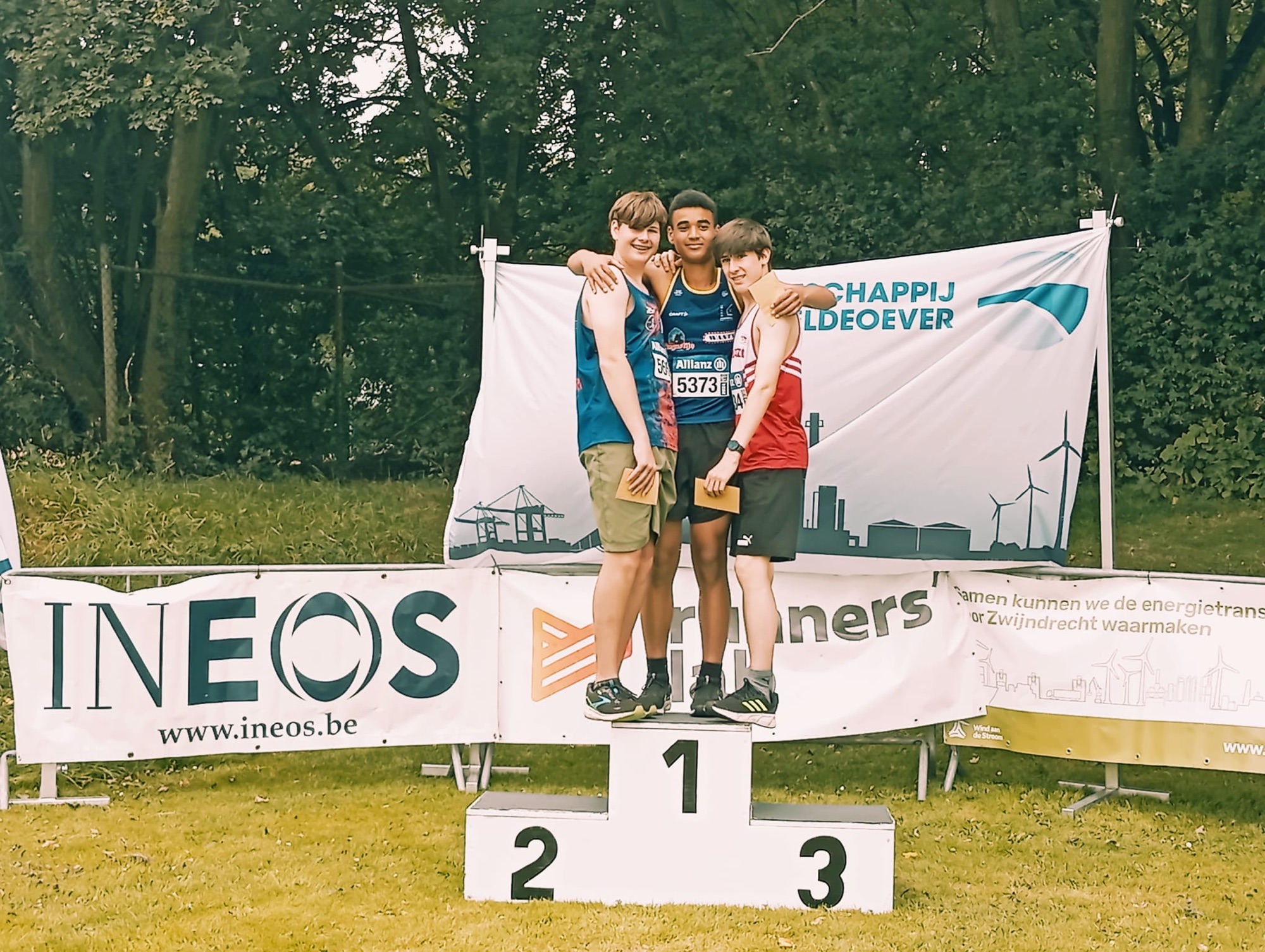 Tweedejaars cadet Lowie De Meyer leverde zowel in het discuswerpen als het kogelstoten heel knappe prestaties af. Hij realiseerde respectievelijk 40m47 en 14m15 en kwam zo tweemaal dicht bij een PR. Ongetwijfeld worden die binnenkort nog een stukje scherper gesteld…