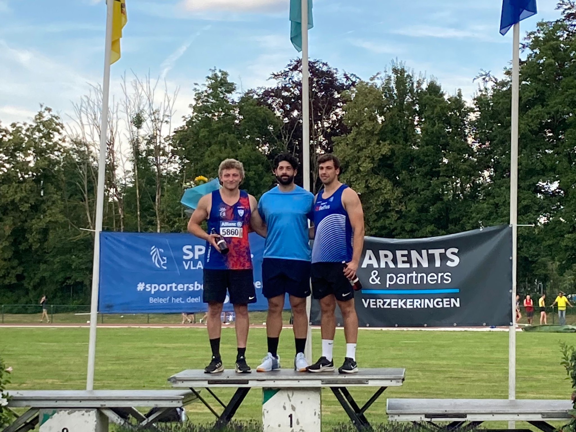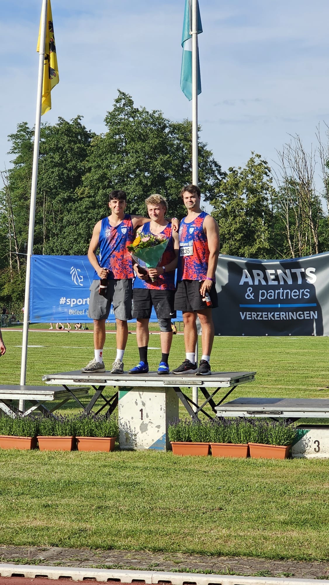 Junior Robbe, net terug van weekje vakantie, wou zijn kunnen nog eens testen met de 7.26kg zware kogel. Hij realiseerde een degelijke 13m41 en werd hiermee 2de. Het werd daar in Ninove zelfs een volledig VS-podium want in dezelfde wedstrijd kwamen Andreas en Leander respectievelijk tot 17m89 en 13m14, goed voor de 1ste en 3de plaats. Leander wou met zijn hamstring nog geen risico’s nemen en omdat hij toch reeds ingeschreven stond, werkte hij de wedstrijd af met standworpen.