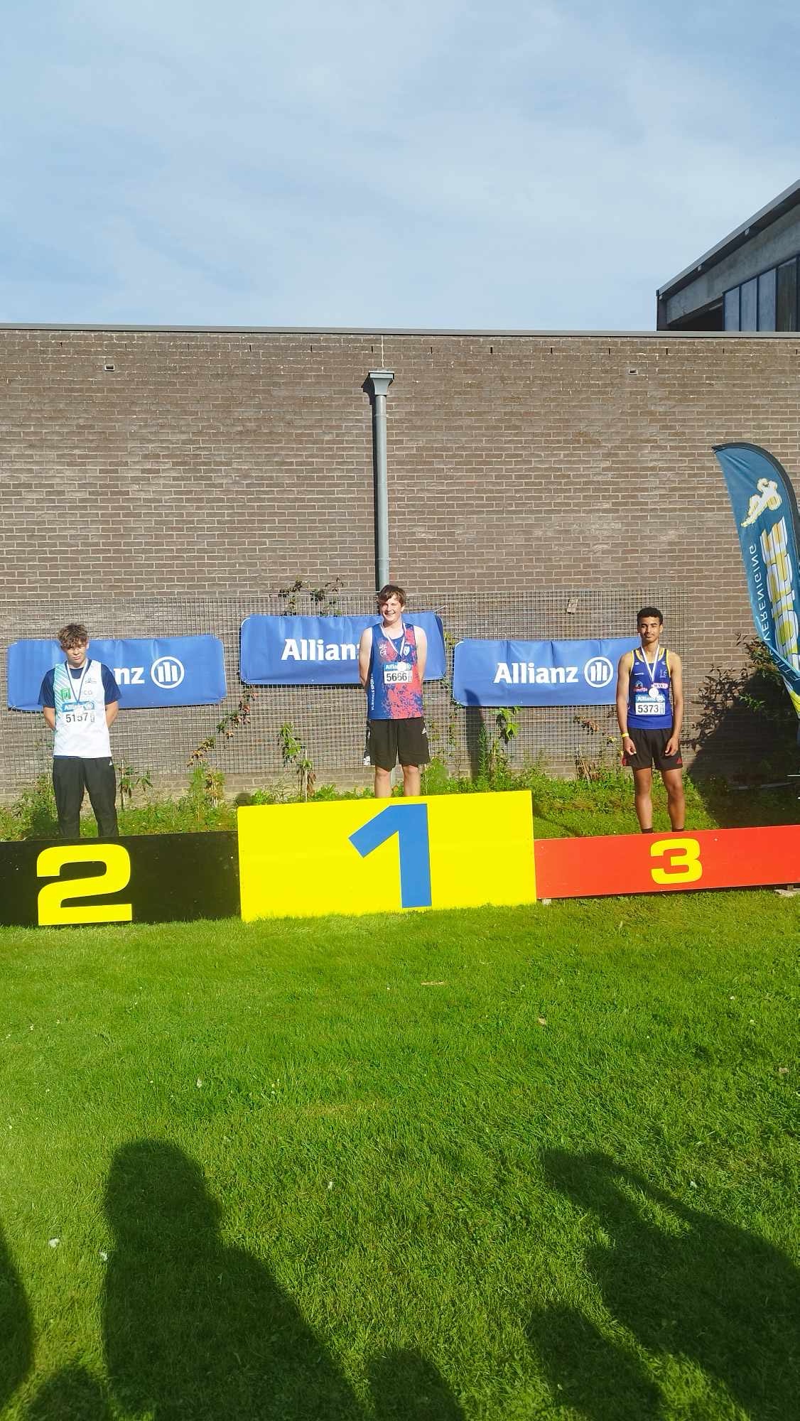 Vervolgens probeerden cadetten Keano Miserez en Lowie De Meyer bij het discus wat eremetaal te veroveren. Keano wierp een heel mooi persoonlijk record met 41m38. Bijna een meter verder dan zijn vorige PR en goed voor een 5de plaats, heel straf voor een eerstejaars. Lowie wierp in zijn laatste worp 44m31, hij hield de spanning er in maar werd uiteindelijk Vlaams kampioen. Het laatste nummer van de dag voor ons, was het kogelstoten met Lowie. Het werd vanaf het begin een zeer spannende wedstrijd. Lowie wierp alweer in zijn laatste worp de winnende afstand, een dik PR van 15m03.