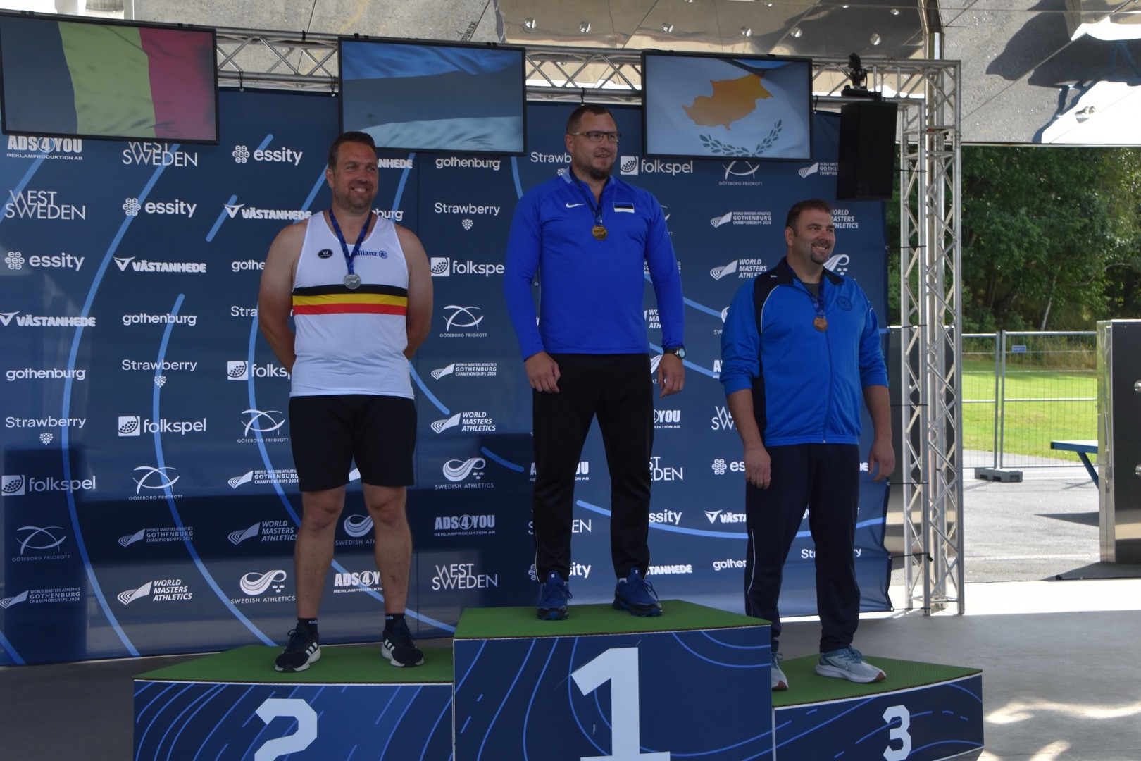 Het vroege aanvangsuur – opstaan om 5u – en de vele wandelingen de voorbije dagen zorgden voor zware/vermoeide benen. Gelukkig heeft Filip wel wat ervaring en is hij technisch nog best goed, hierdoor haalde hij een mooi niveau met 14m33. Het was nodig want de Cyprioot Petros Mitsides kwam nog tot 14m26, de Est Fred Vali was buitencategorie met 15m92. In een internationaal deelnemers veld met kogelstoters uit Estland, Cyprus, Frankrijk, Iran, Zweden, Polen en Japan werd Filip knap 2de. Een welverdiende zilveren medaille, wie had dit gedacht toen hij exact 30 jaar geleden begon met atletiek.