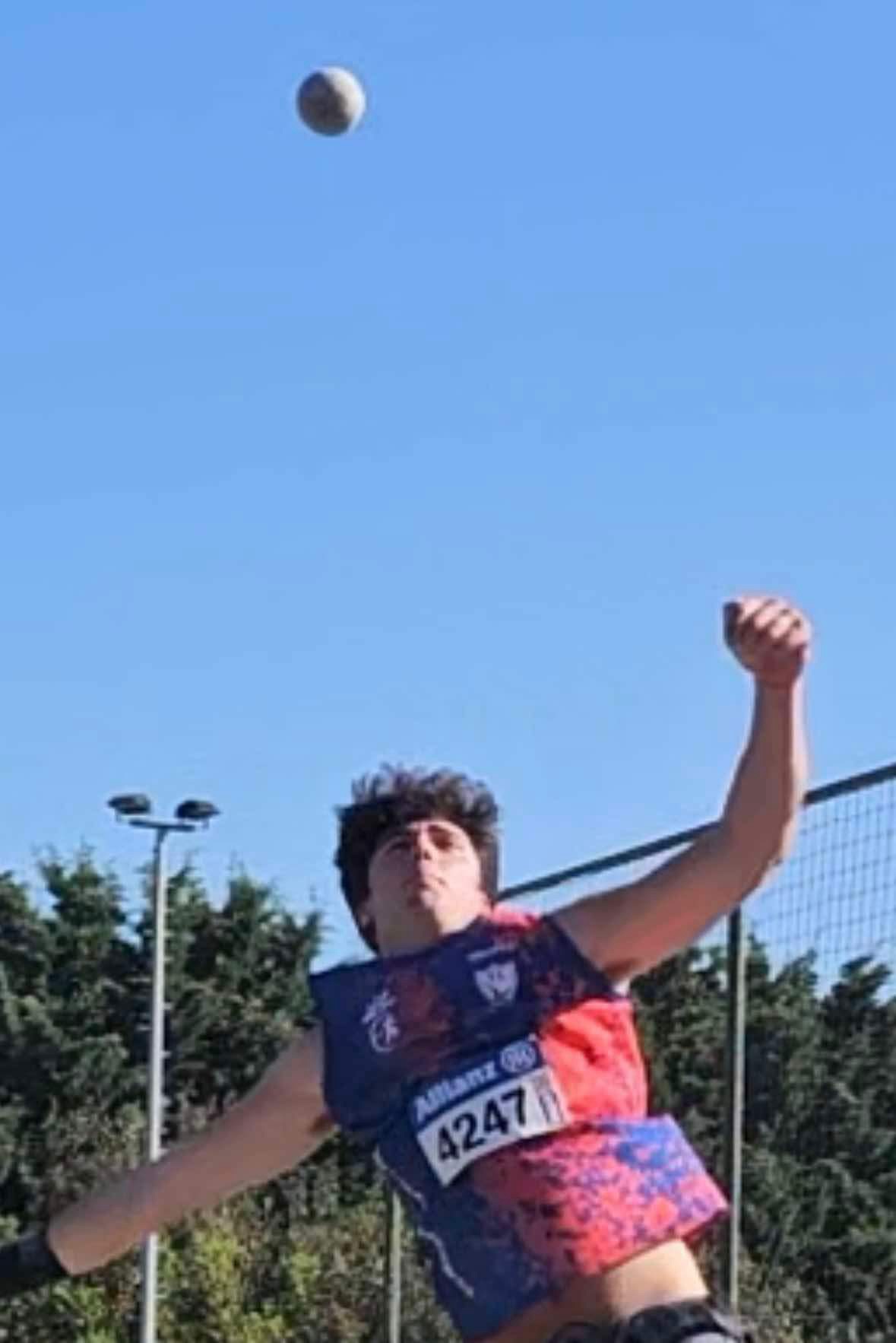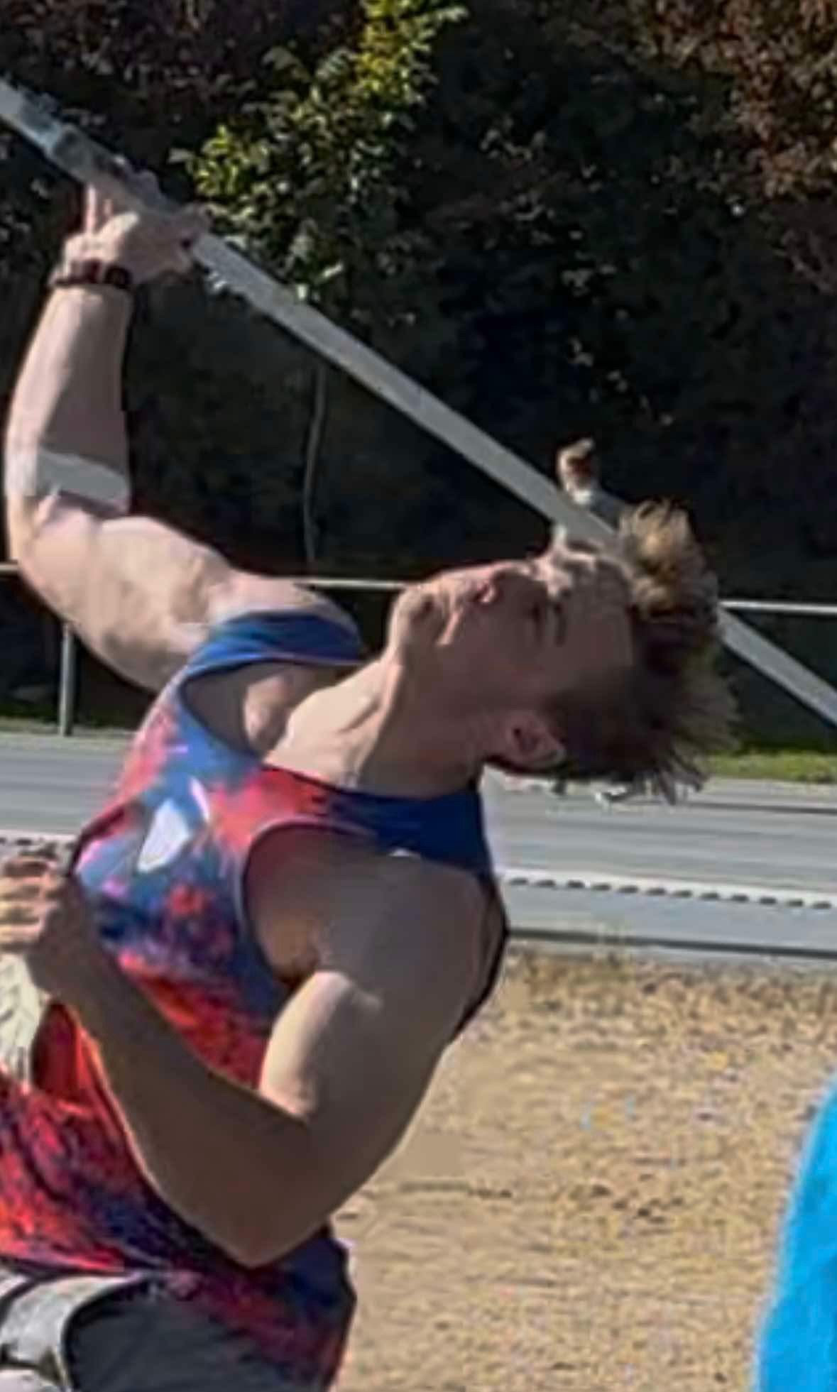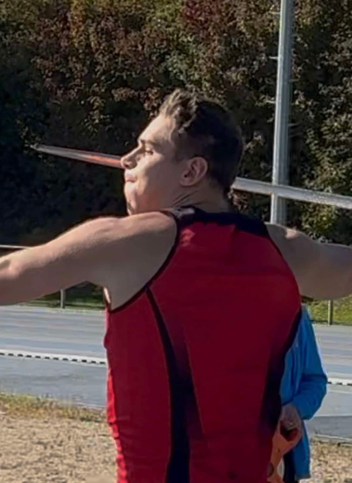 Cédric ging deftig (niet super) van start met hamer, na een beloftevolle training de dag ervoor moest hij vandaag tevreden zijn met 37m41. Dit was een PR maar toch bleef hij een beetje op zijn honger zitten. Bij kogel kon hij geen topworp bevestigen. Zijn verste worp, 14m90. Op training lag de focus bij niemand nog op ver gooien, dus deze afstanden zeggen niks over volgend seizoen, waar Cé ongetwijfeld insane zal gaan. Daarna gingen we naar het discuswerpen. Met een goede worp van 45m86 moest hij tevreden zijn, maar dit was hij niet. Hij weet dat er veel meer in zit (winnaarsmentaliteit). Zijn speer vloog redelijk ver om amper op te trainen, hij wierp 37m43. Wie weet zit er nog een echte speerwerper in hem. (Zal wel nog wat moeten groeien dan…) Bij het gewicht liet hij 12m56 opmeten. Hier valt niet veel over te zeggen, alleen dat het niet ver is xxx. Al bij al waren er geen nummers waar hij heeft “zitten sauzen”, dus verwezenlijkte hij een respectabele score van 3066 punten.