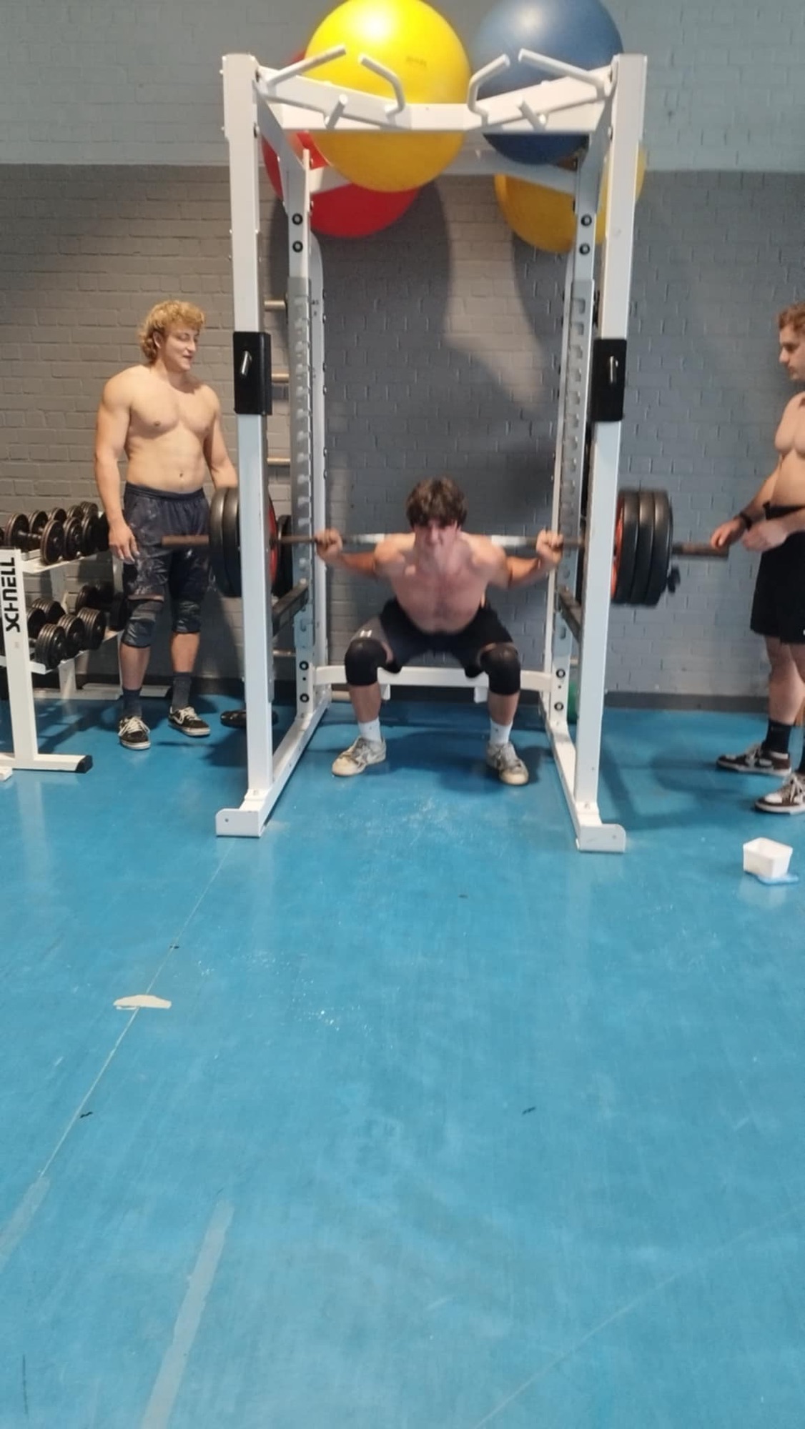 Zelfverzekerd begonnen er enkelen te squatten, te cleanen en Silke moest zich weer op de cardio schieten. Juist Levi had andere plannen… vers uit “de cut” is hij dit weekend begonnen aan zijn grote winterbulk. Gelukkig was André, een gevorderde / uit de hand gelopen “bulker”, er om enkele tips en schema’s voor te schotelen. Patat! In de squat lag de focus op zware reeksen. Waar Robbe zich welverdiend als koning kroonde. Op hetzelfde moment begonnen de gevorderde atleten aan de bar te sleuren. Na deze goede opwarming begaven ze zich ook naar het powerkot voor het cleanen. Levi was ondertussen zijn biceps aan het oppompen, dit stond weldegelijk op zijn schema 😉 .