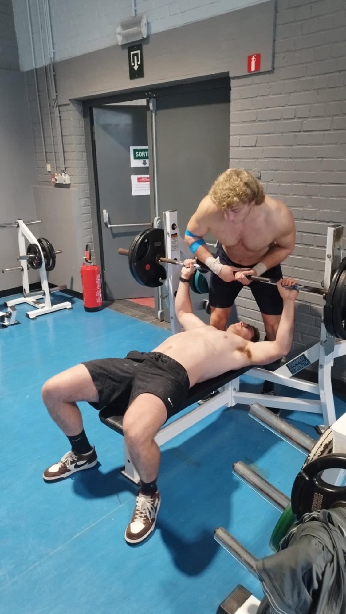Robbe ging door op hetzelfde elan in de snatch en vestigde in zijn 3e poging een nieuw PR. Ondertussen was Levi nog steeds in de hoek te vinden waar hij zijn biceps nog meer aan het oppompen was. Maar waar iedereen het meest naar uit keek was de “bench-off” tussen huidig “benchkoning” Filip en overweight cookie… euh rookie André. De uitdager werd gekroond tot winnaar en kijkt uit naar een rematch als Filip er van bekomen is. Als kers op de taart ging onze kleine “chestprins” Cé met een groots PR naar huis 🙂 .