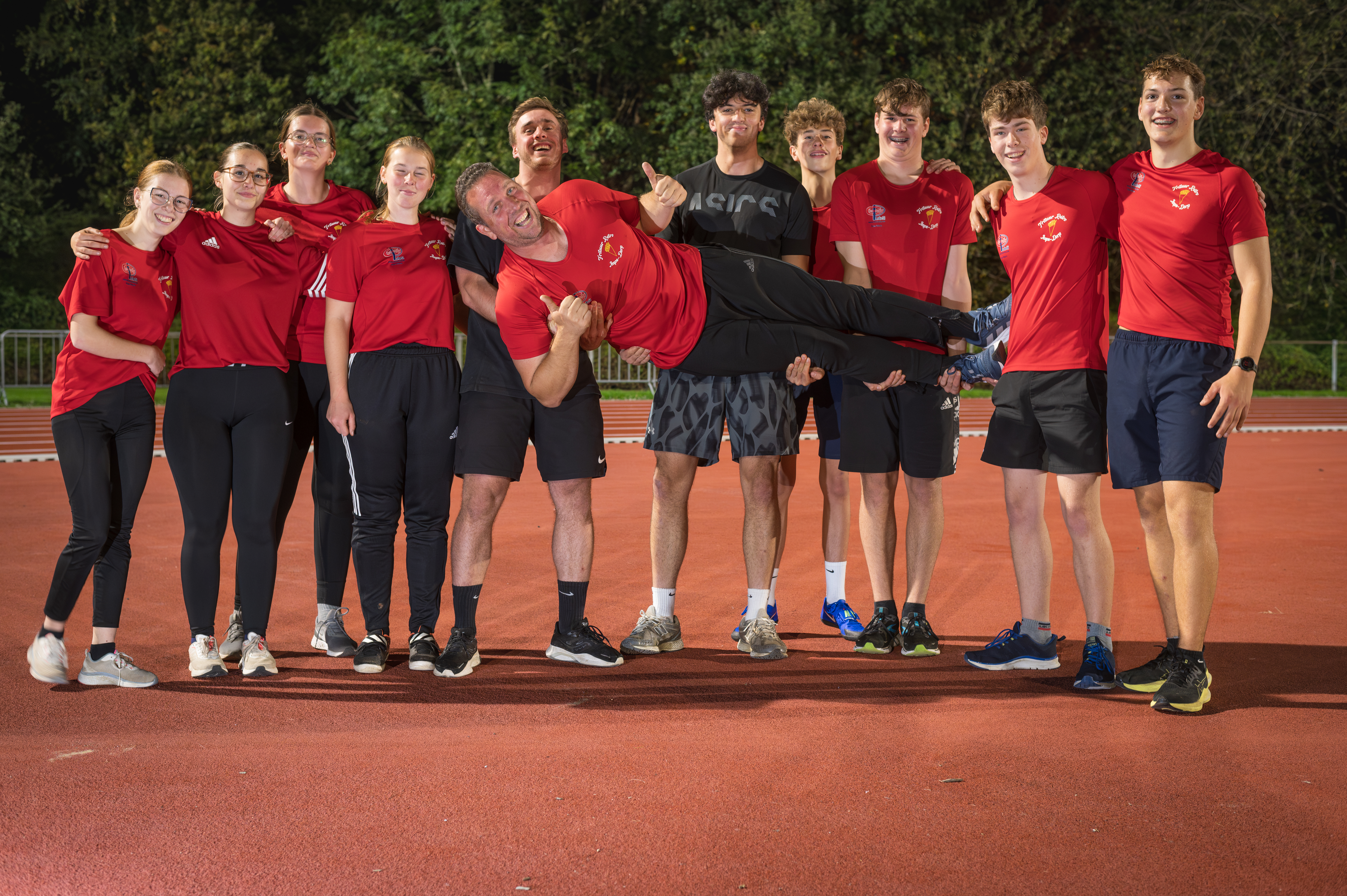 Op woensdag 16 oktober , een zachte herfstavond, trok ik samen met mijn medecursisten en onze lesgever Patrick naar de atletiekpiste in Oordegem, een ideale gelegenheid net nu de piste vernieuwd is. Met al ons materiaal. Flitsers, achtergrond, reflectieschermen, bouwlamp, rookfakkels en 10 gemotiveerde fotografen gingen we aan de slag. 2 uur lang konden we we de atleten en hun trainer fotograferen. Proberen en zoeken tot we de juiste belichting, pose en cadrage vonden. Niet altijd evident voor de modellen die met hun kogel of discus in pose stonden. Het resultaat mocht er best zijn. Het was een heel fijne en leerrijke sessie met topmodellen.