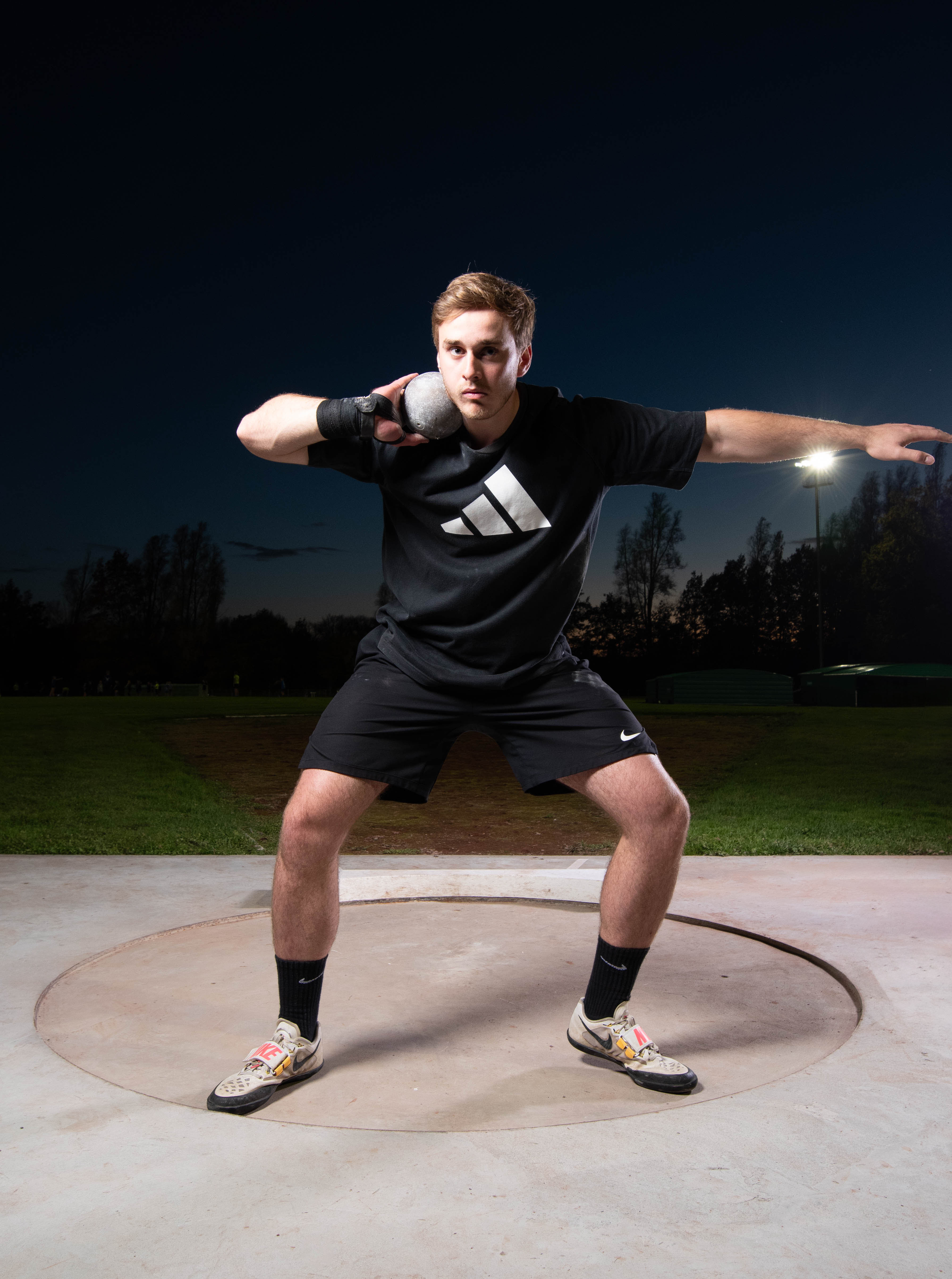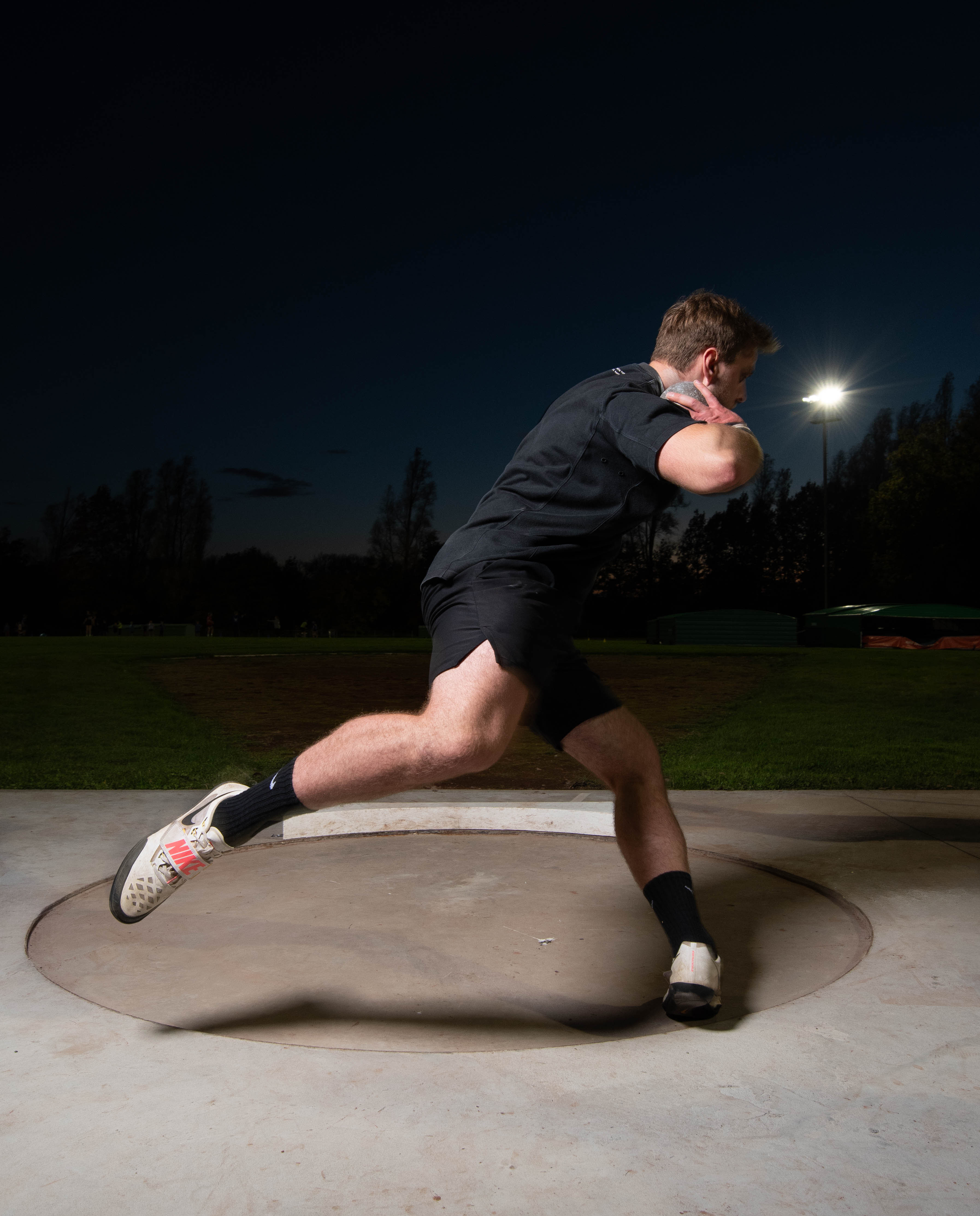Sinds enkele jaren volg ik aan het CVO in Aalst de opleiding fotografie. Nu volg ik samen met de andere cursisten de module “mens”. Het fotograferen van de mens in al zijn facetten. We fotograferen vaak in de studio in het KTA aan de Welvaertstraat. Bij de start van de module in september kregen we de opdracht : ofwel een model meebrengen naar de studio of op locatie gaan. Een andere hobby naast het fotograferen is het vurig aanmoedigen van onze Lukas die als kogelstoter en discuswerper lid is van de FEThrowers. Gelukkig kunnen beide passies perfect gecombineerd worden. Toen ik de opdracht kreeg hoefde ik niet lang te twijfelen en vroeg ik aan Filip of zijn atleten het zouden zien zitten om zich te laten fotograferen. Dit bleek geen probleem…