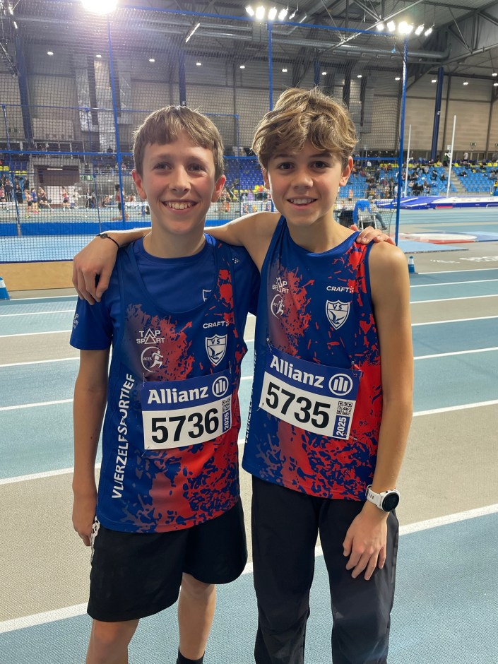 Onze meerkamp cadetten jongens openden op zaterdag 21 december het indoorseizoen met twee degelijke prestaties. Degelijk, want er zit nog duidelijk meer in! š Zo verbeterde tweedejaars cadet Basile Decock zijn persoonlijk record tot 8m31, terwijl eerstejaars cadet Elias Eeckhout bij zijn allereerste wedstrijd met de 4 kg zware kogel een afstand van 6m97 liet opmeten.