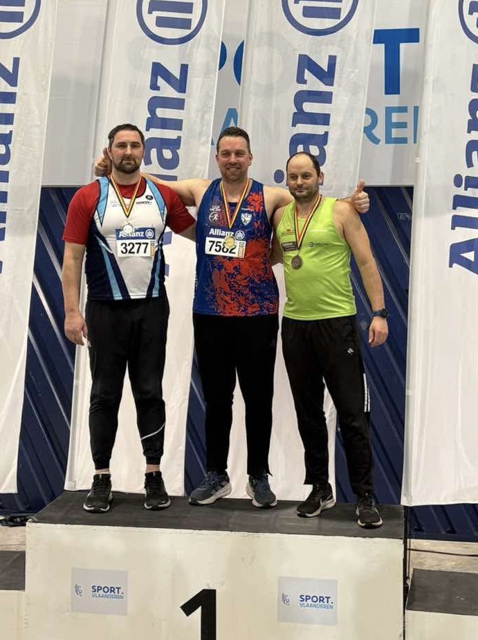 Op zaterdag 22 februari trok onze trainer Filip Eeckhout naar het BK Masters in de Topsporthal te Gent. Bij de masters M45 wachtte hem stevige concurrentie van Alain Guillaume, een krachtpatser met wie Filip al jaren intense duels uitvecht. Dit seizoen had Alain al 14m45 gestoten, tegenover de 14m78 van Filip. Het BK beloofde dus spannend te worden.