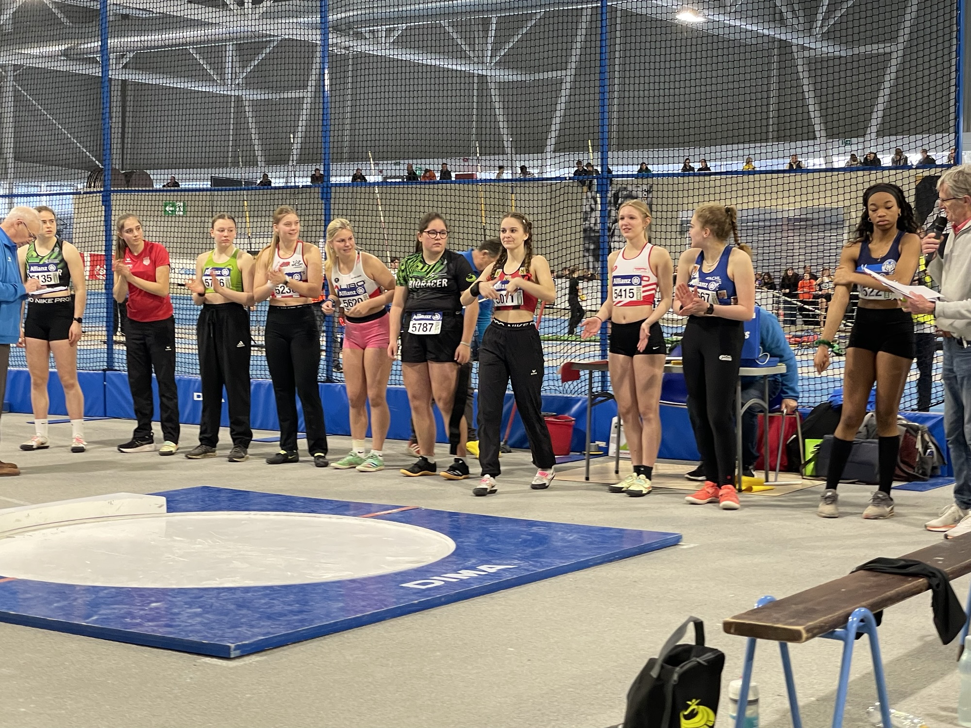Bij het kogelstoten bij de cadetten meisjes verdedigde meerkampster Floor Smet met allure onze clubkleuren. Dit keer zonder clubgenote en eerstejaars Esmee Magry, die door een blessure moest afmelden. Floor begon sterk aan haar wedstrijd met een degelijke stoot van 10m50, wat meteen wat stress wegnam. Vervolgens groeide ze verder in de wedstrijd en verbeterde ze zich tot 10m87, wat haar een schitterende bronzen medaille opleverde.