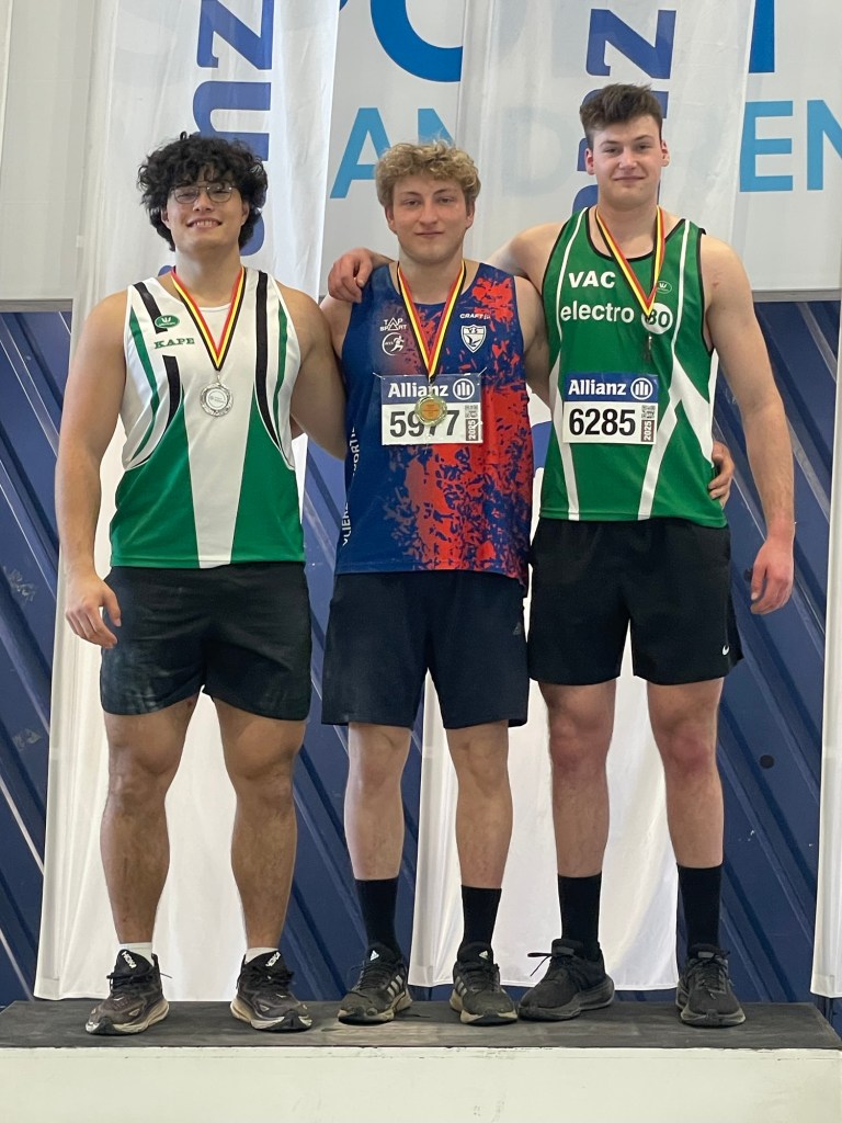 Stipt om 10 uur begonnen onze junioren mannen aan hun wedstrijd. Het vroege aanvangsuur bleek geen hinderpaal, want na een prima opwarming vlogen ze er meteen stevig in. Zowel Lukas Lanckman als tweedejaars Robbe Van Hoorde openden sterk met respectievelijk 11m37 en 16m93. Lukas verbeterde zich nog tot 11m72 en stootte in totaal vier keer verder dan ooit! Hetzelfde gold voor Robbe, die in zijn tweede poging uitpakte met een dik nieuw persoonlijk record van 17m25. Deze afstand volstond ruim voor zijn eerste Belgische titel én een schitterende vierde plaats aller tijden bij de u20. Na deze worp stootte hij nog tweemaal voorbij de 17 meter, wat heel beloftevol is!
