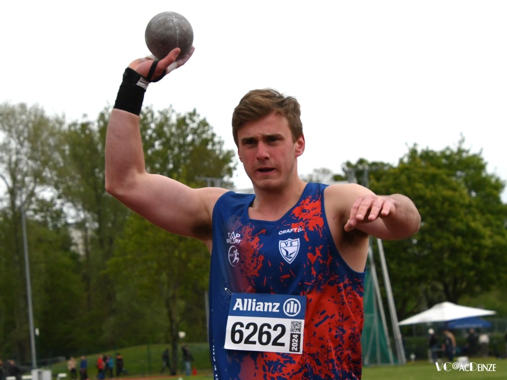 Na het vrouwengeweld was het de beurt aan onze mannen met de kogel. Junior Robbe miste wat frisheid en kwam deze keer tot “slechts” 16m99. Later op de avond liet hij in het discuswerpen een heel stabiele reeks opmeten, met 43m37 als verste worp.