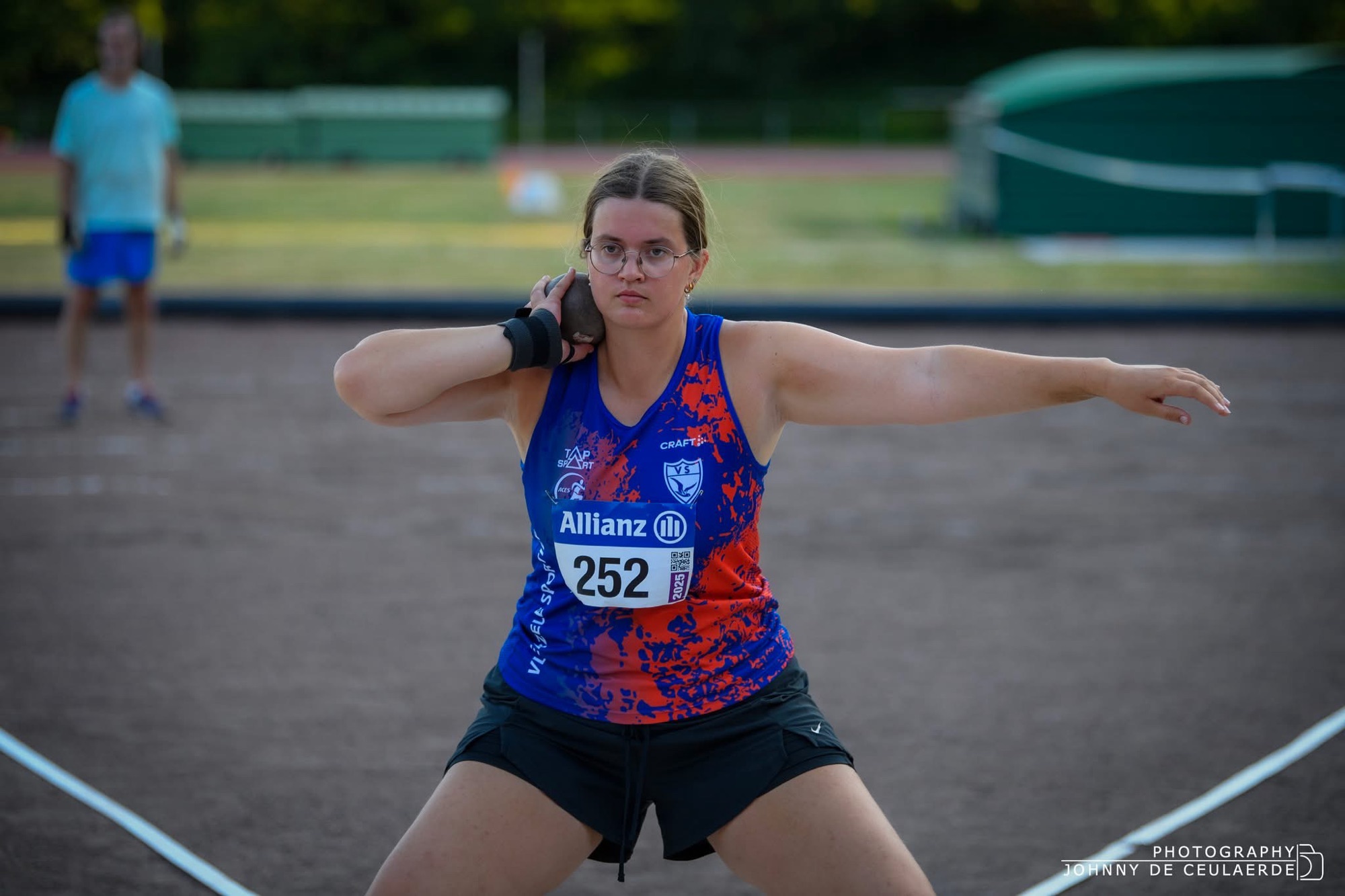 Onze juniores dames presteerden degelijk, zonder echte uitschieters. Eerstejaars Loes De Meyer kwam tot een mooie 10m61 in het kogelstoten en wierp 29m40 met de discus. Tweedejaars Inge Eeckhout hoefde niet veel onder te doen: 10m46 met de kogel en een seizoensbeste van 28m10 in het discuswerpen. In datzelfde nummer zagen we ook Silke De Lathauwer, die een sterke wedstrijd afwerkte en met 41m20 haar derde beste prestatie van het seizoen liet opmeten.