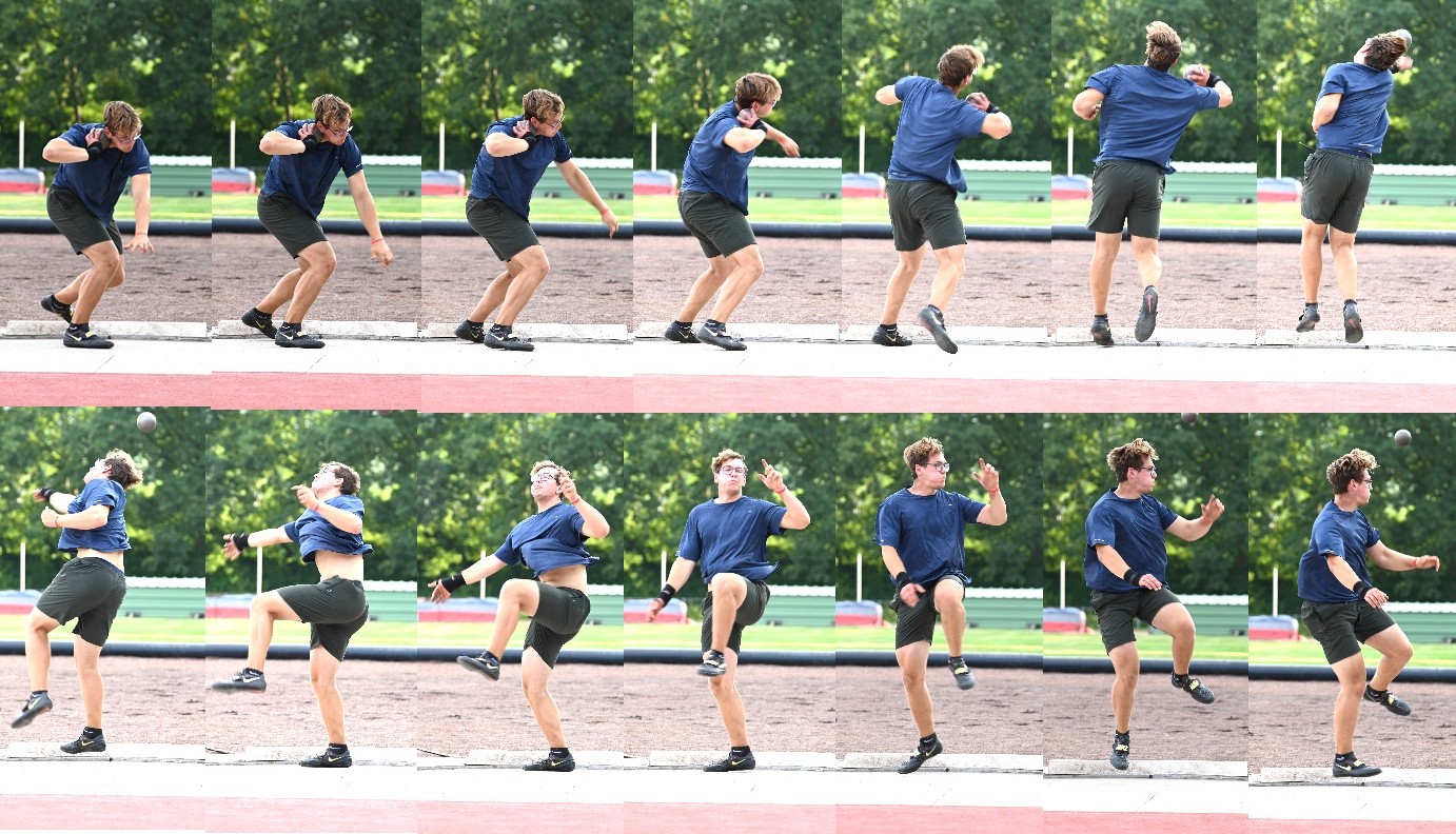 Ook in het kogelstoten liet Lukas zich van zijn beste kant zien. Hij stootte de kogel naar een outdoorbeste van 11m64. Misschien heeft onderstaande beeldreeks van Jos Verleysen hem wel geïnspireerd om extra aandacht te besteden aan zijn technische uitvoering: